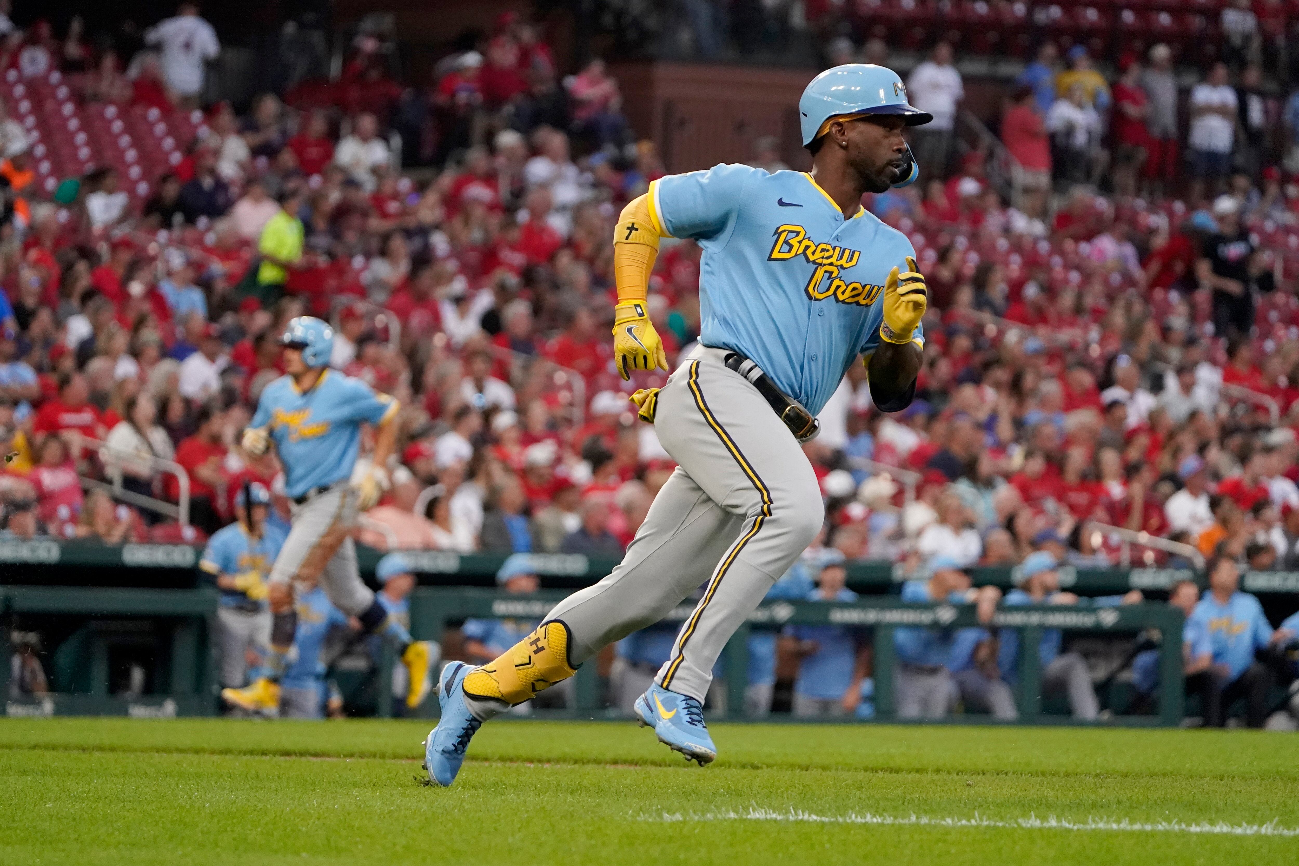 SAN LUIS (AP) — Andrew McCutchen disparó un jonrón y empujó tres carreras por los Cerveceros de Milwaukee, que recurrieron a ocho lanzadores para doblegar el martes 8-4 a los Cardenales de San Luis.