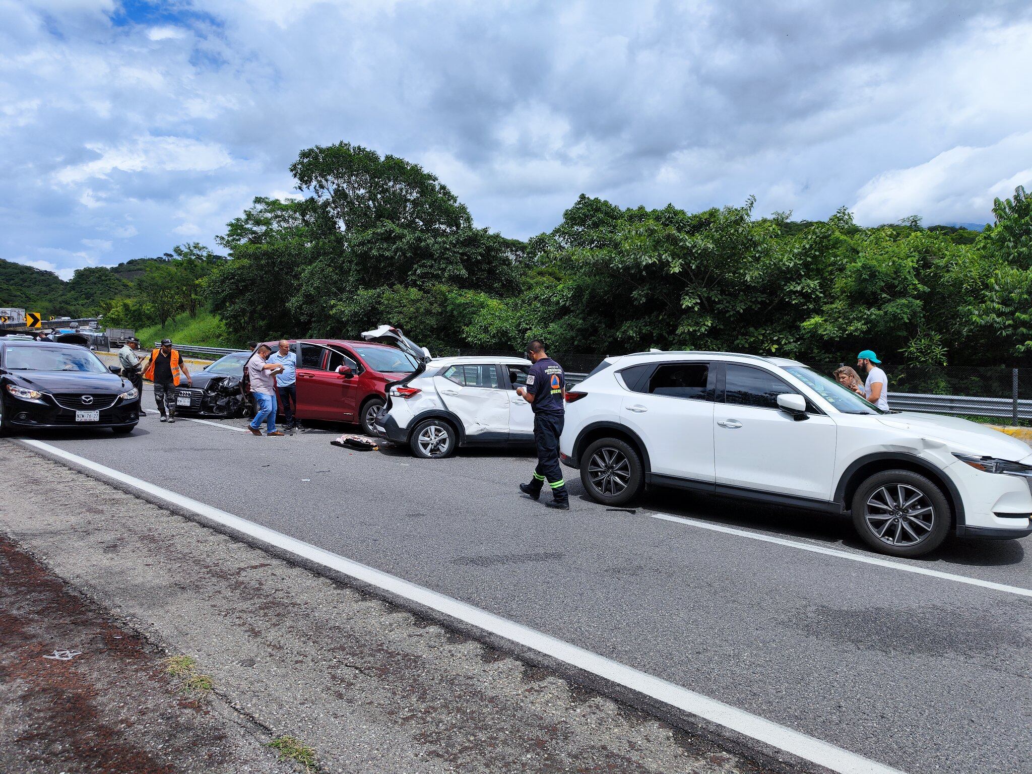 Roberto Arroyo, secretario de Protección Civil de Guerrero, dijo que la carambola se presentó cerca de las 14:00 horas, al sitio llegaron paramédicos y personal de Caminos y Puentes Federales (Capufe) para brindar atención médica a los heridos.