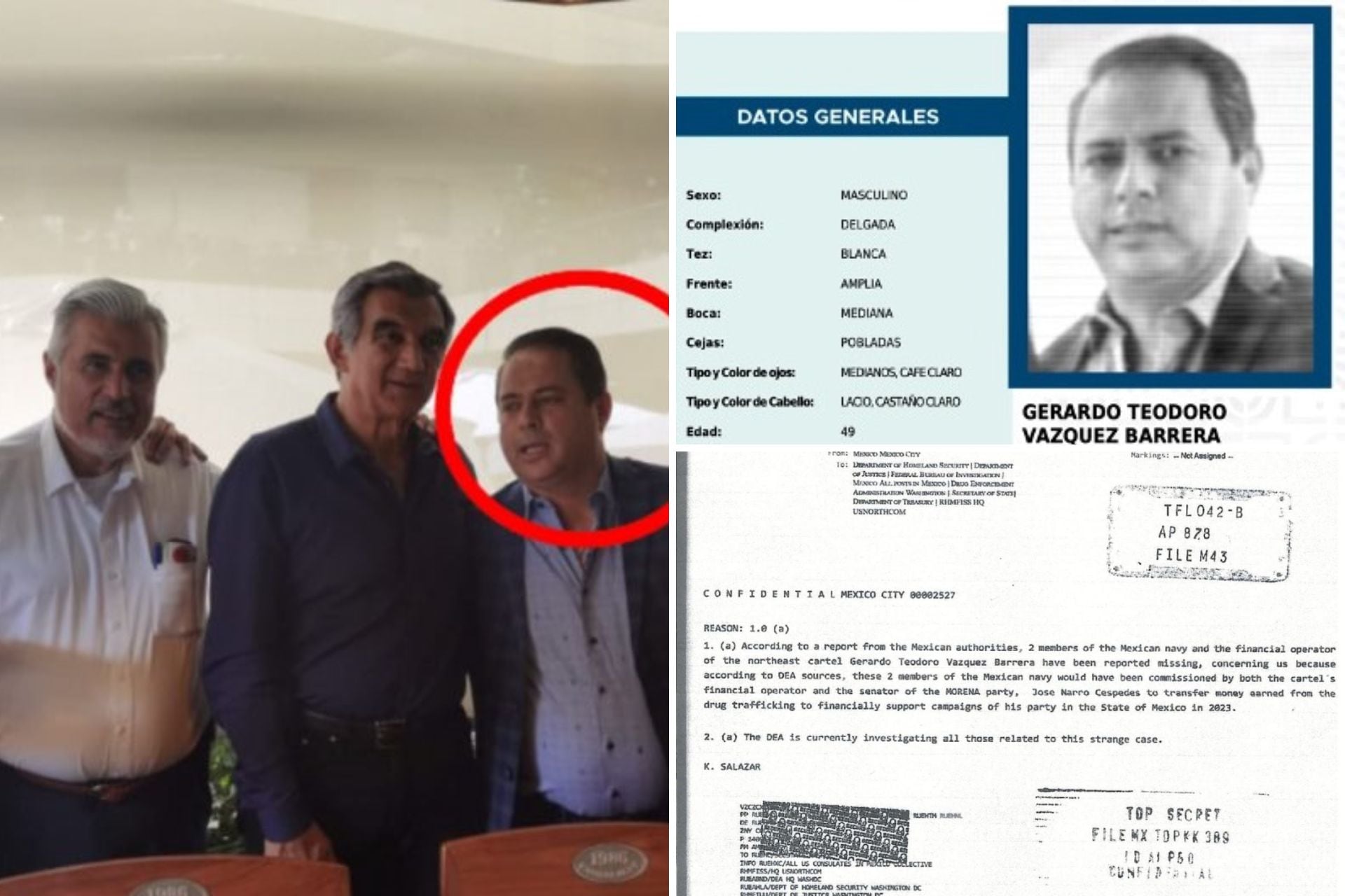 Los documentos filtrados por Mauleón refieren que el 14 de marzo del año en curso, el embajador de Estados Unidos Ken Salazar envió un cable confidencial dirigido a instituciones como la Administración de Control de Drogas (DEA, por sus siglas en inglés); el Departamento del Tesoro; y el Departamento de Justicia estadounidenses, en los que señala presunta financiación procedente del tráfico de drogas para financiar las campañas de Morena en el Estado de México en 2023.