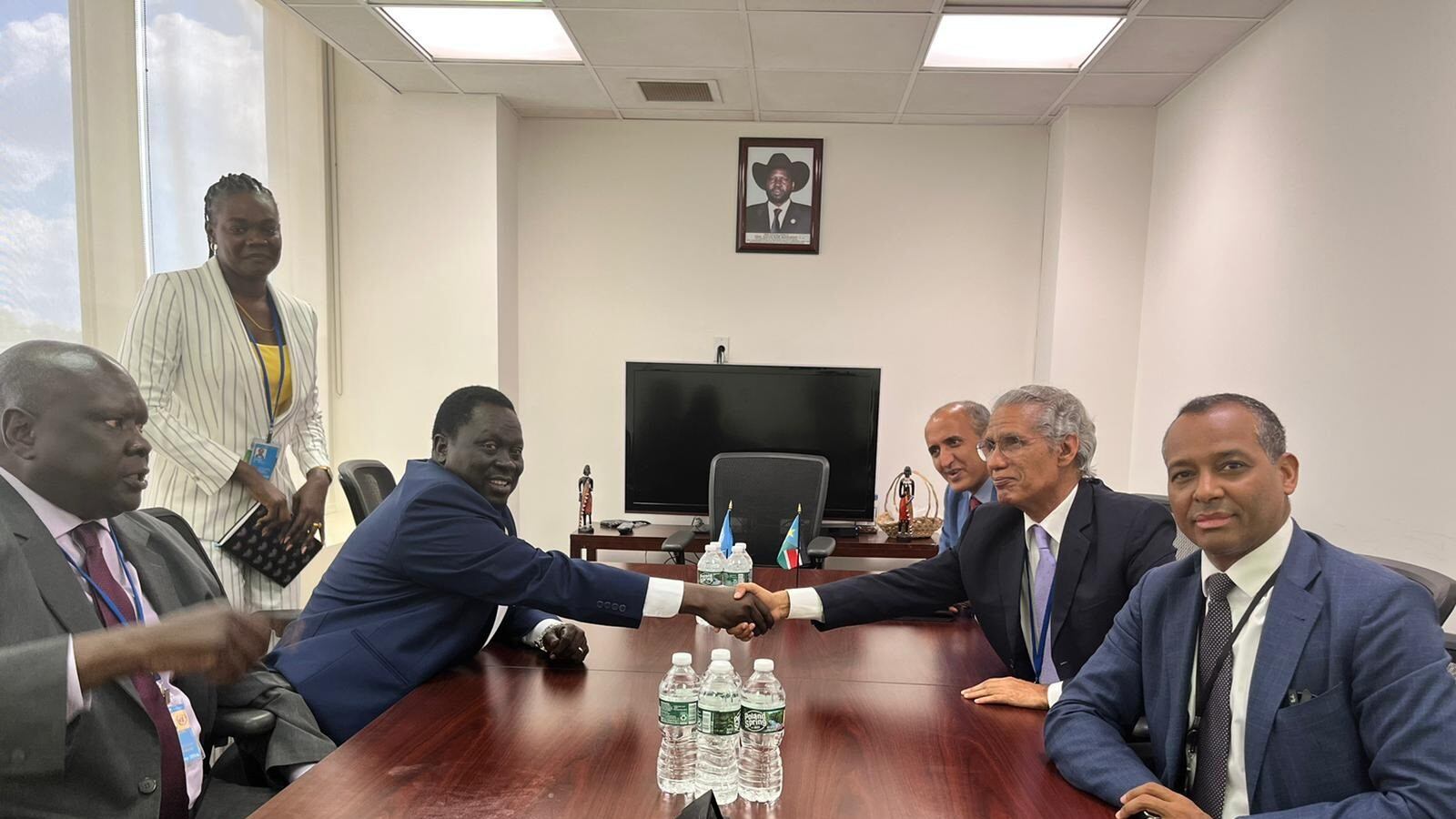 Las autoridades de Sudán del Sur y de la RASD acordaron el martes, "en consonancia con los principios y objetivos de la Unión Africana", el restablecimiento de las relaciones diplomáticas "al más alto nivel" en un encuentro al margen de la Asamblea General de la ONU en Nueva York, que reunió al vicepresidente sursudanés, Husain Abdelbaki Akun, y al responsable de la RASD, Mohamed Salem Salek.