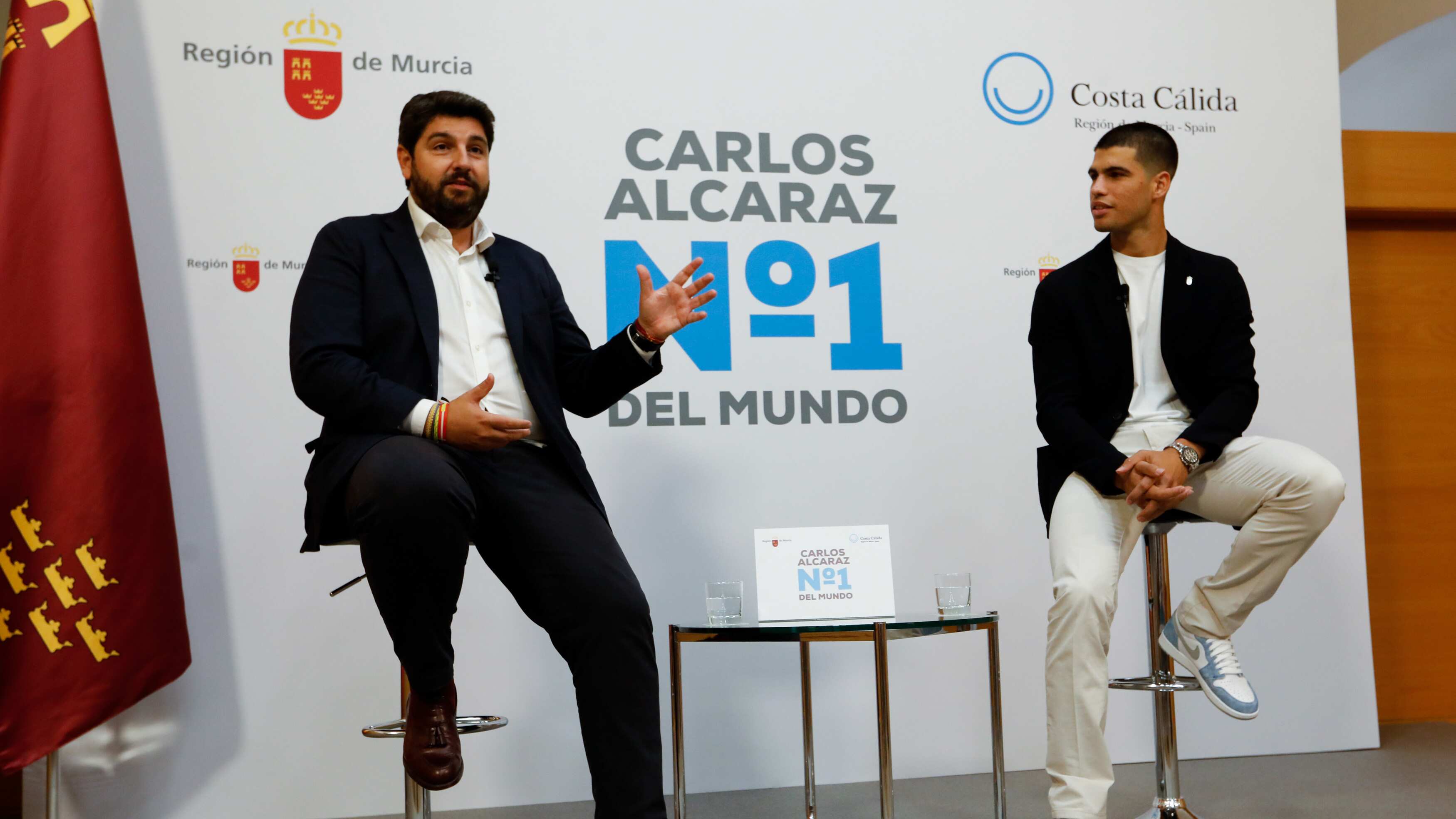 "Es un orgullo para cualquier murciano ser de la misma tierra que Carlos Alcaraz por lo que ha hecho y por lo que está haciendo", según López Miras, quien ha recordado que solo 12 españoles han ganado un grand slam; mientras que solo cinco han ganado el US OPEN; y seis han sido número 1 mundial, cuatro de ellos hombres y dos mujeres.