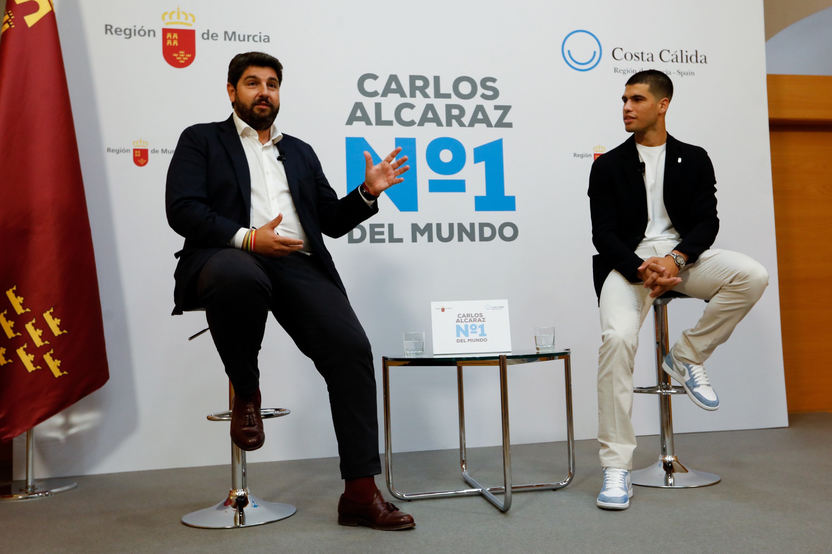 "Es un orgullo para cualquier murciano ser de la misma tierra que Carlos Alcaraz por lo que ha hecho y por lo que está haciendo", según López Miras, quien ha recordado que solo 12 españoles han ganado un grand slam; mientras que solo cinco han ganado el US OPEN; y seis han sido número 1 mundial, cuatro de ellos hombres y dos mujeres.
