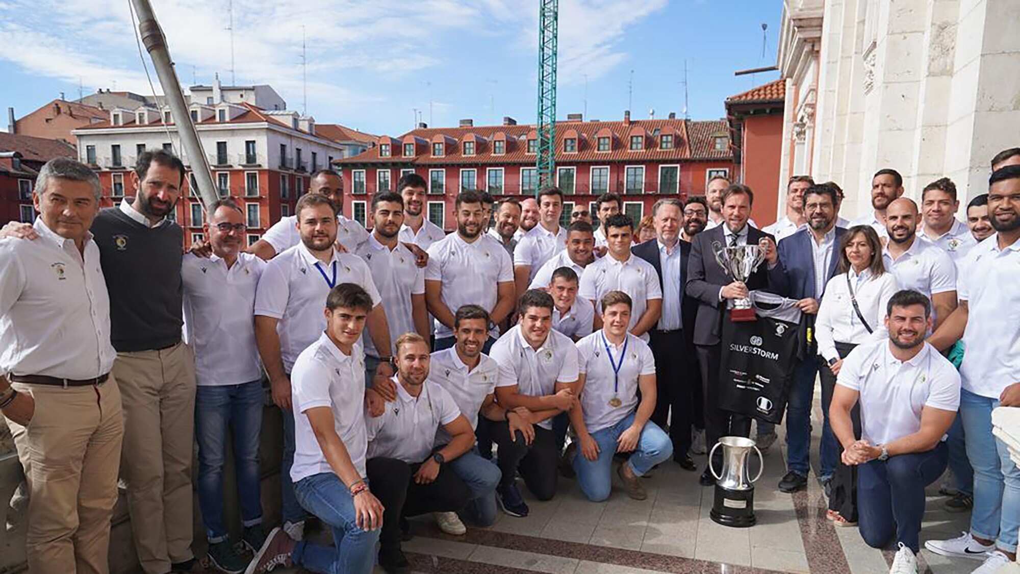 A partir de las 19.30 horas de la tarde de este lunes los flamantes campeones de la Copa de SM el Rey retornarán a la Plaza Mayor, donde se procederá al habitual festejo, colocando la bandera del Club de Rugby El Salvador a la estatua del Conde Ansúrez.