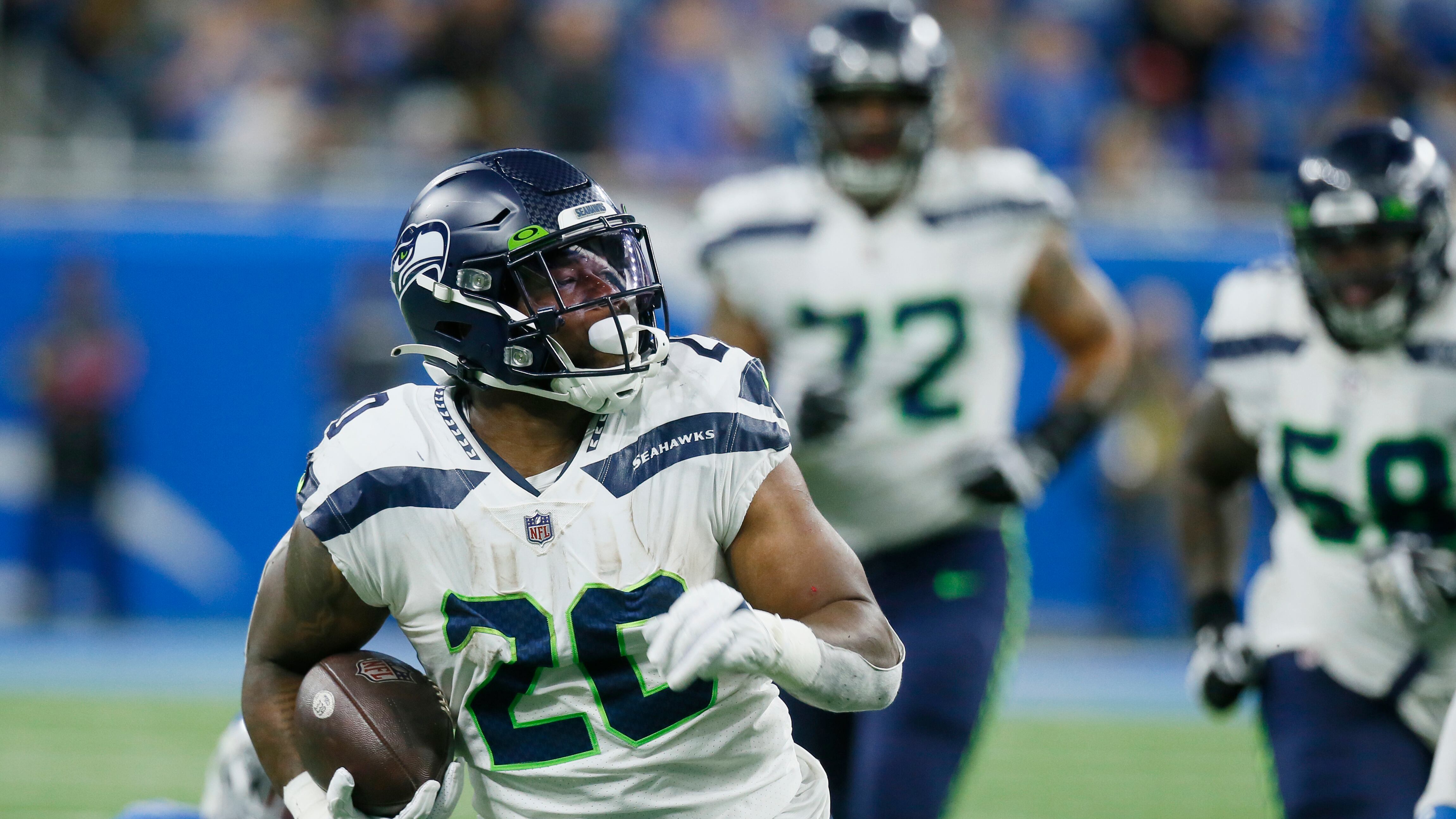Los Seahawks (2-2) fueron frenados en tercera oportunidad al final del tercer cuarto, pero el reloj de juego del Ford Field no fue ajustado correctamente. Seattle aprovechó la repetición de la jugada y la desorganización de la defensa de Detroit con un acarreo de touchdown de 36 yardas de Rashaad Penny en tercera y 16 por avanzar, anotación con que extendió la ventaja a 38-23.