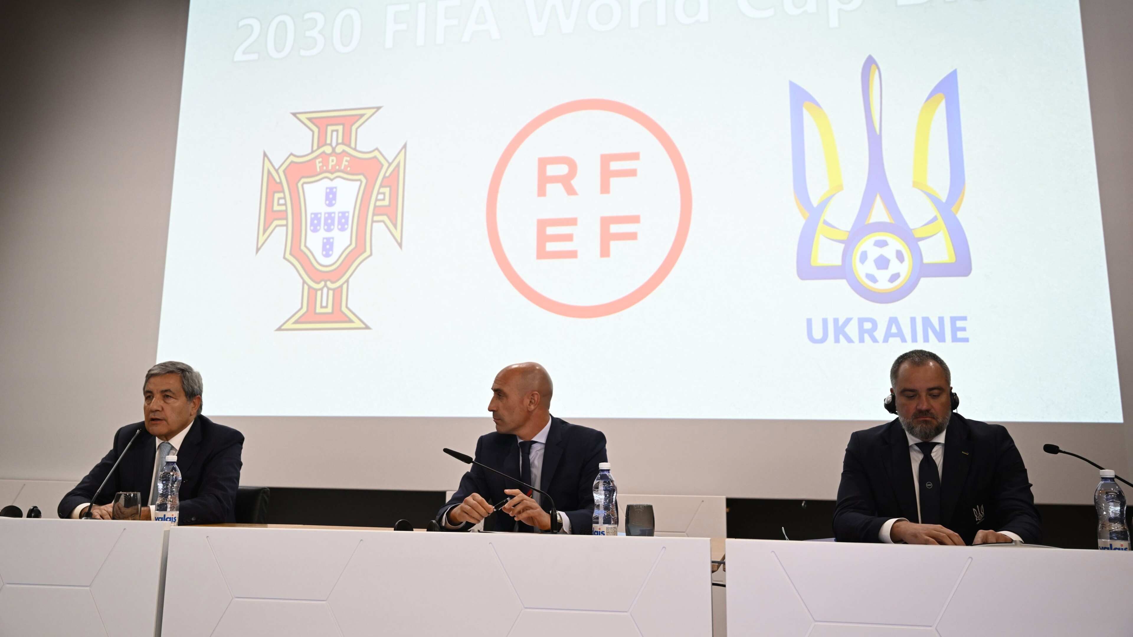 "Quiero agradecer a la UEFA, que siempre nos ha apoyado, y transmitir lo orgulloso y feliz que me siento de estar sentado entre dos compañeros. Hemos tenido continuas conversaciones con Andrey (Pavelko, presidente de la Federación Ucrania) durante estos meses y antes del conflicto, pero que se habían agudizado más", señaló Rubiales en rueda de prensa tras realizarse el anuncio.