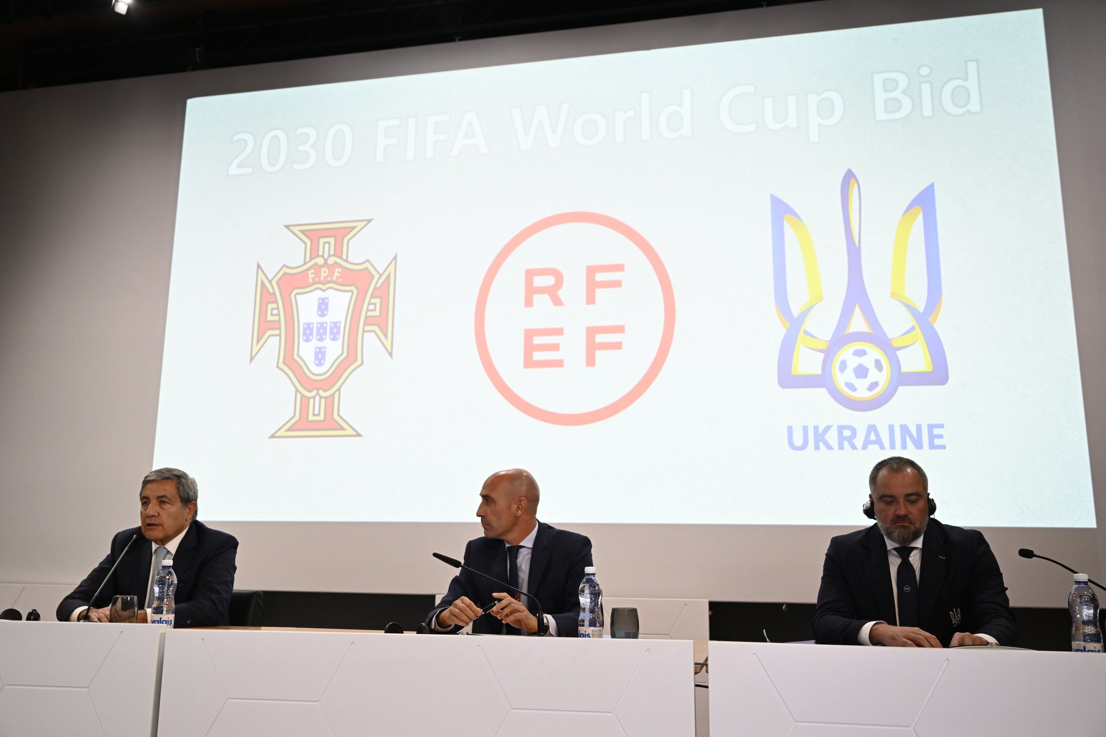 "Quiero agradecer a la UEFA, que siempre nos ha apoyado, y transmitir lo orgulloso y feliz que me siento de estar sentado entre dos compañeros. Hemos tenido continuas conversaciones con Andrey (Pavelko, presidente de la Federación Ucrania) durante estos meses y antes del conflicto, pero que se habían agudizado más", señaló Rubiales en rueda de prensa tras realizarse el anuncio.