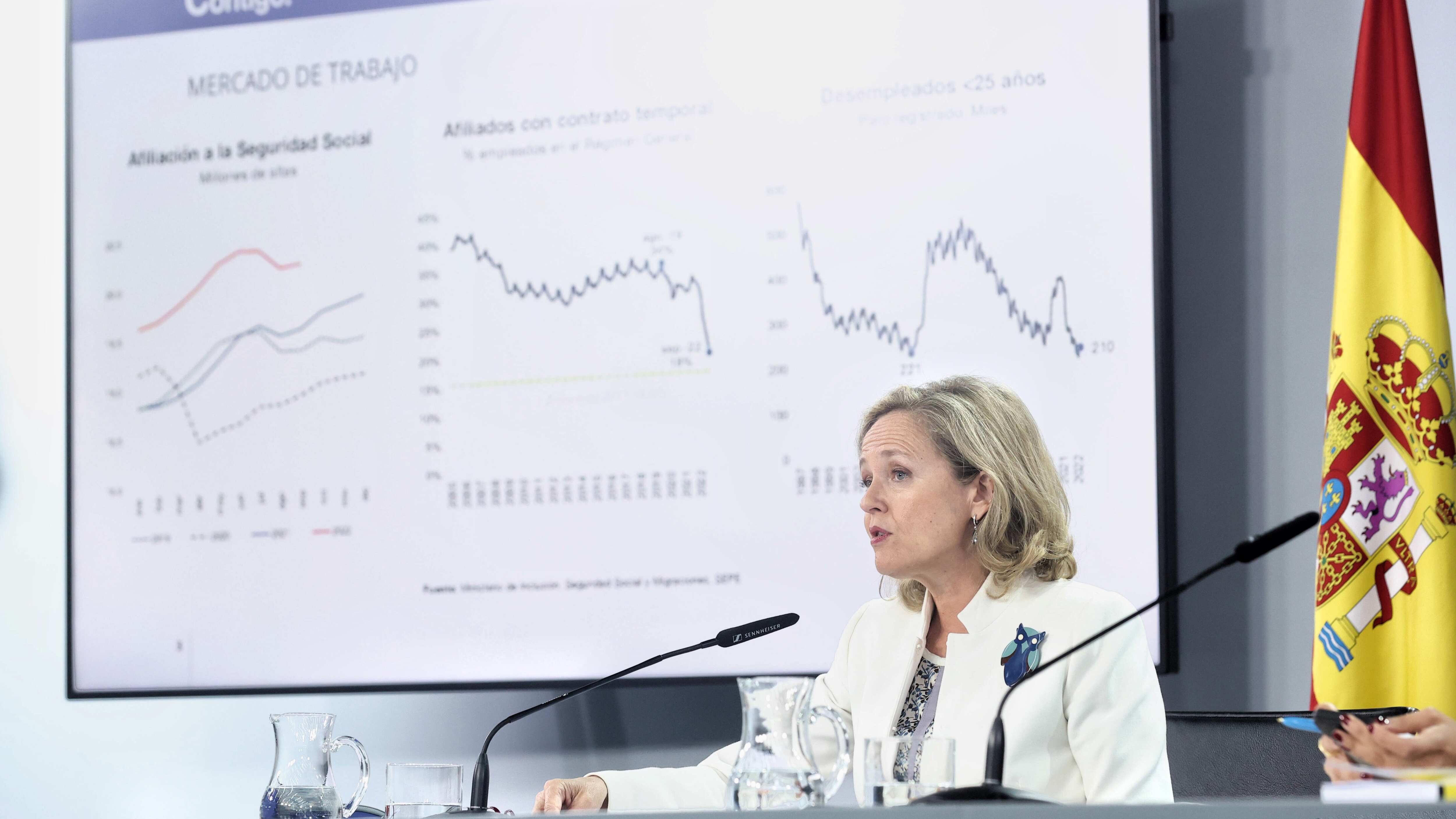 Así, al ser preguntada por si se siente "desautorizada" por el hecho de que el Banco de España estime un crecimiento para 2023 siete décimas menor al previsto por el Ejecutivo, la vicepresidenta ha respondido que "en absoluto".