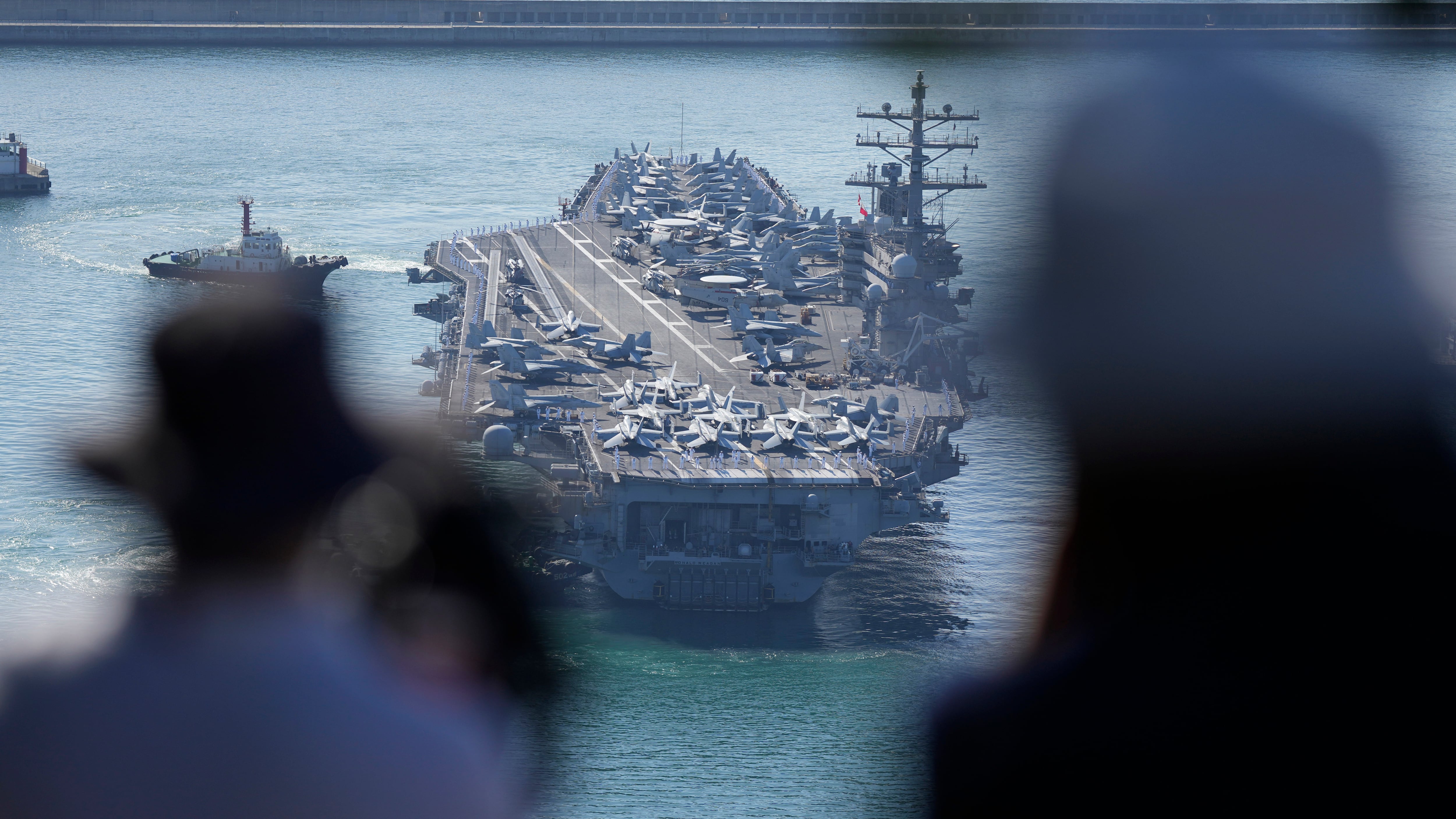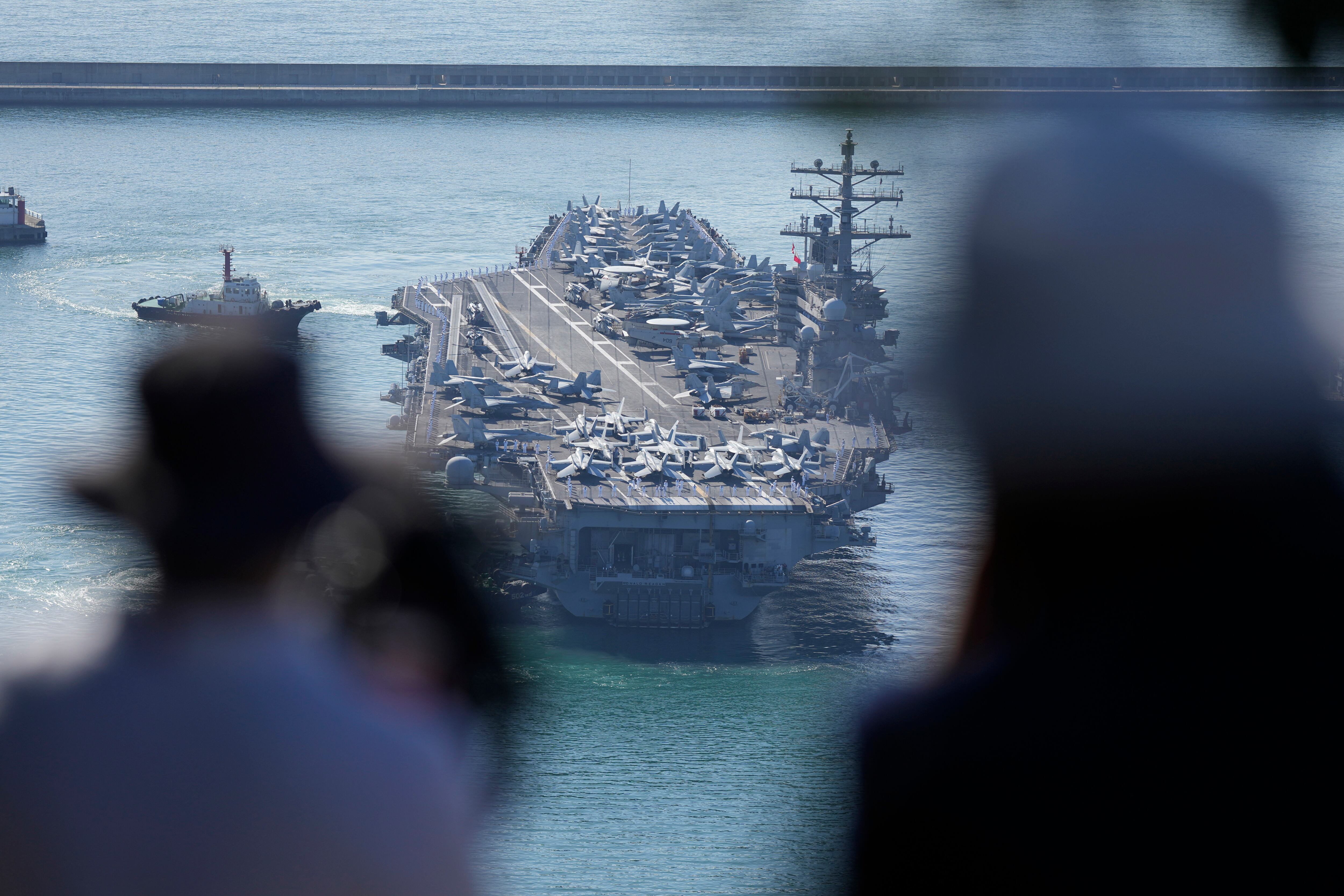 El portaaviones estadounidense USS Ronald Reagan es escoltado a su llegada a Busan, Corea del Sur, el 23 de septiembre de 2022. (AP Foto/Lee Jin-man) AP (Lee Jin-man/AP)