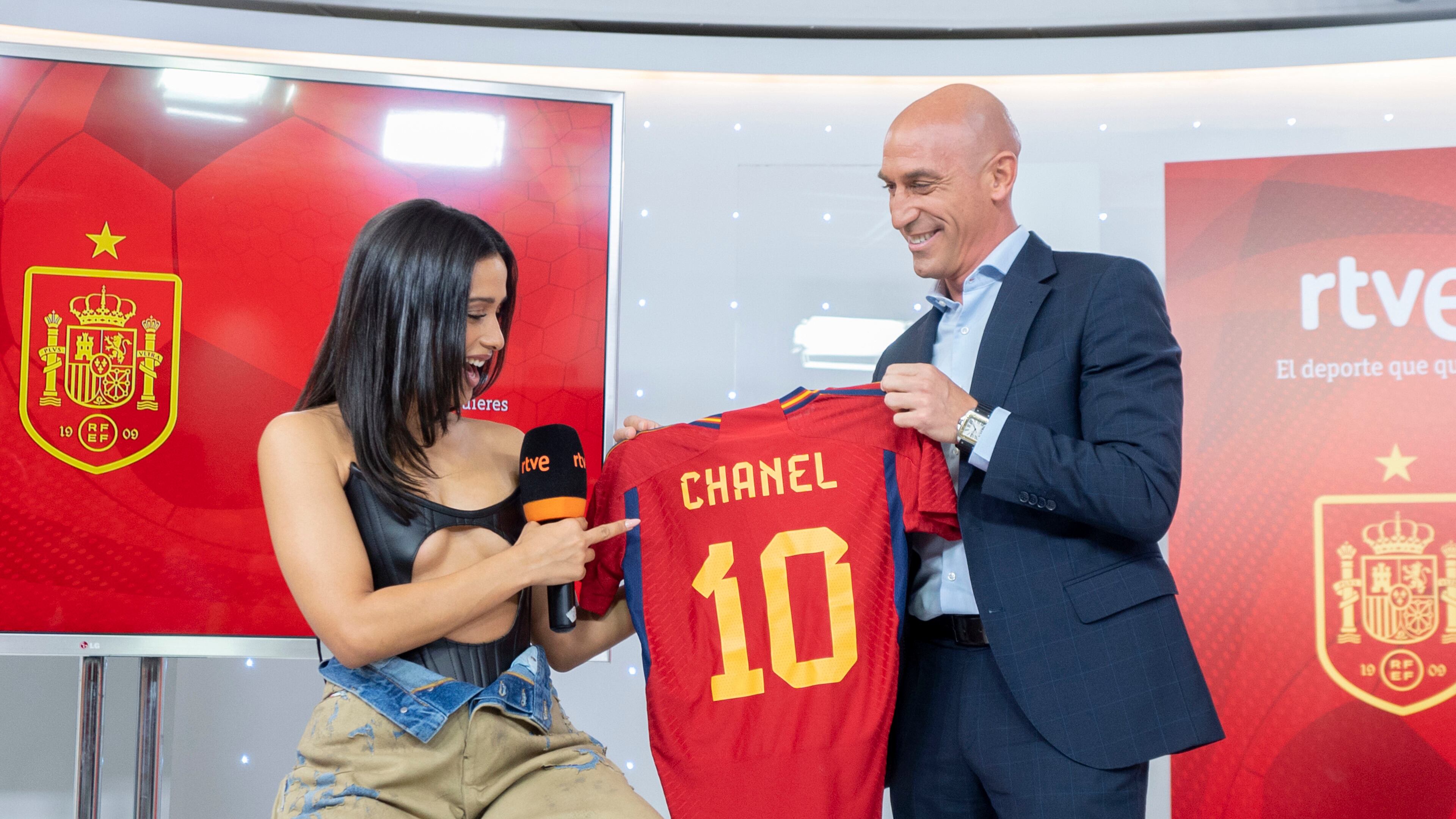 "Estoy muy feliz por 'Sony', por nosotros y por contar con una artista de primer nivel y un orgullo para nuestro país. La selección también es pasión y para alguien que quiere a su país y ama el fútbol, su selección es lo máximo", sentenció Rubiales, que entregó a Chanel una camiseta de la 'Roja' con su nombre y el número '10'.