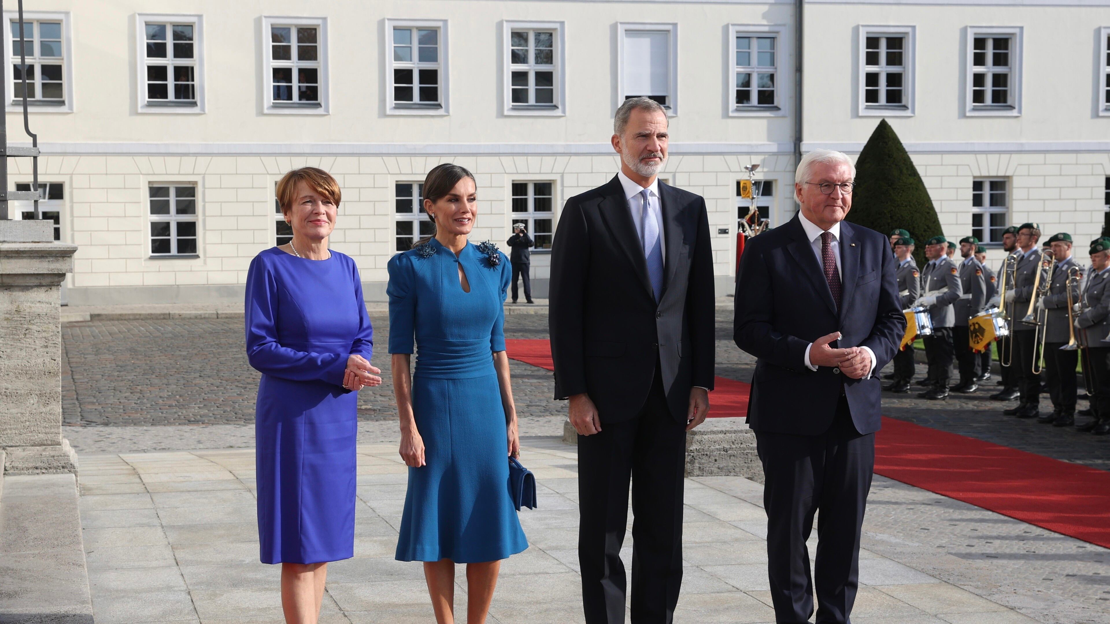Los Reyes han sido recibidos en el Palacio de Bellevue por Steinmeier y su mujer, Elke Buedenbender. Tras firmar en el libro de honor, ha habido un encuentro a cuatro y a continuación encuentros separados de Don Felipe y Steinmeier y de la Reina y Buedenbender.