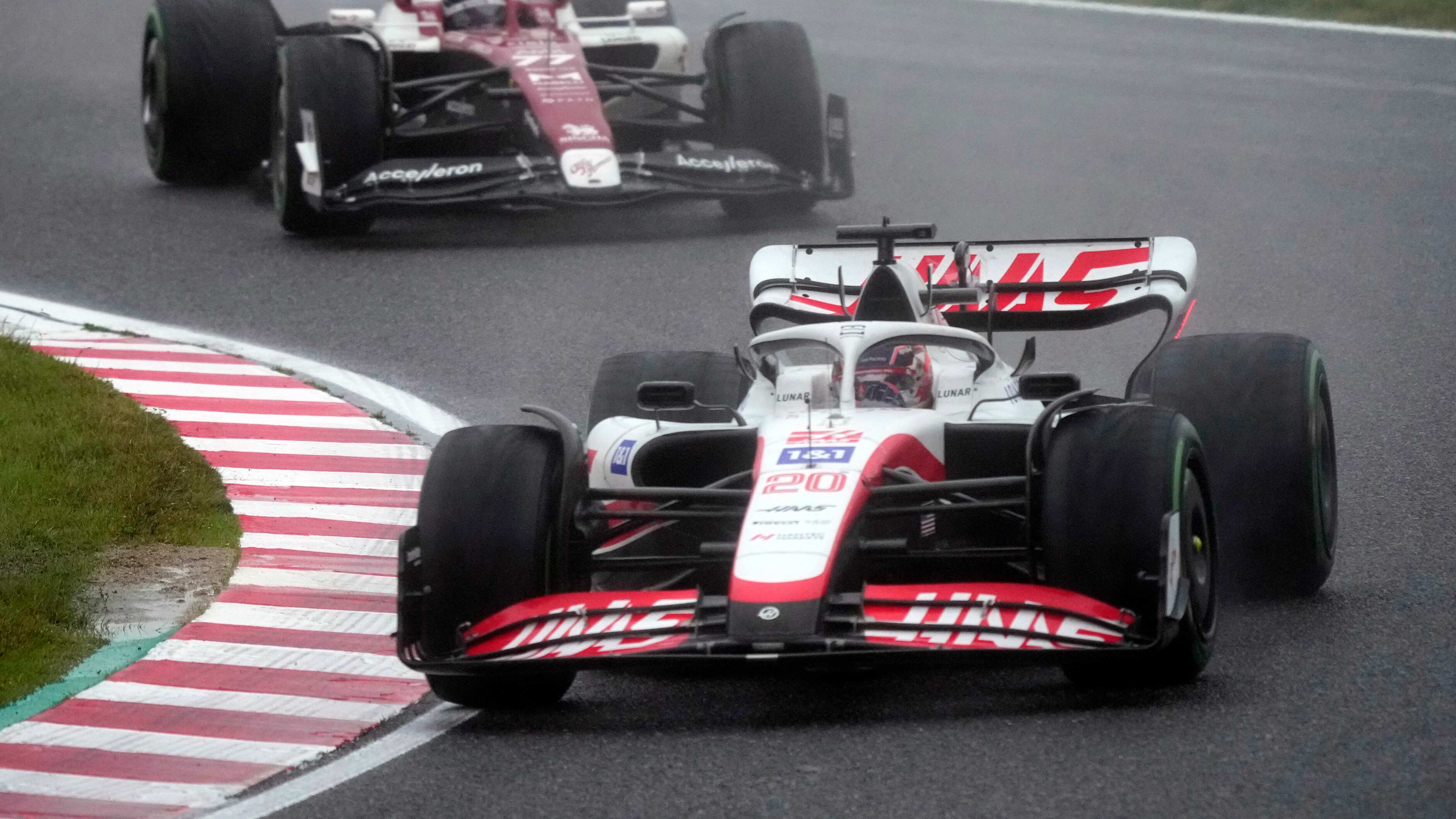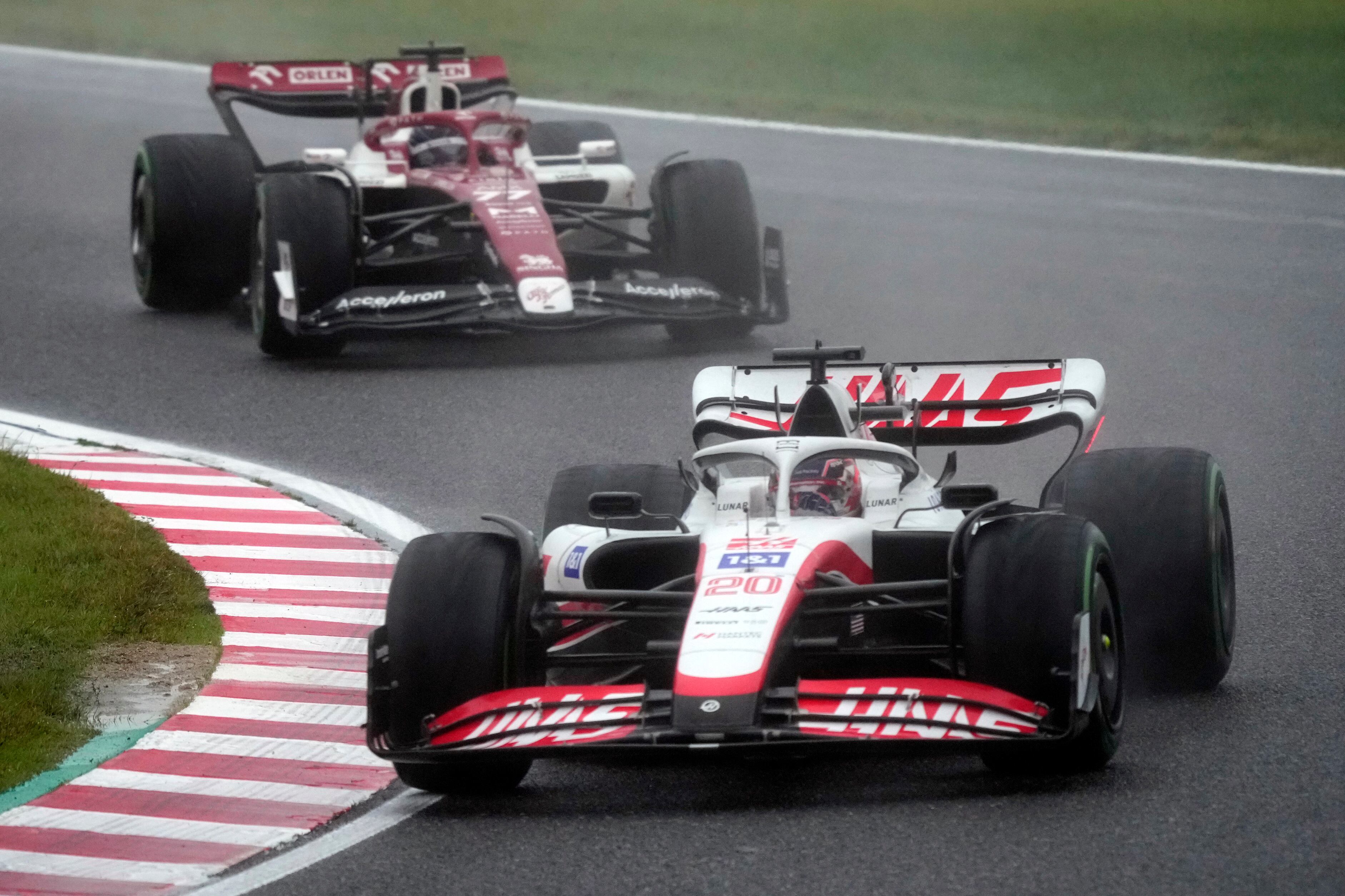 El piloto danés Kevin Magnussen, al frente, de Haas, lucha con el finlandés Valtteri Bottas, de Alfa Romeo, durante el GP de Japón de la Fórmula Uno, en el circuito de Suzuka, Japón, el domingo 9 de octubre de 2022. (AP Foto/Eugene Hoshiko) AP (Eugene Hoshiko/AP)