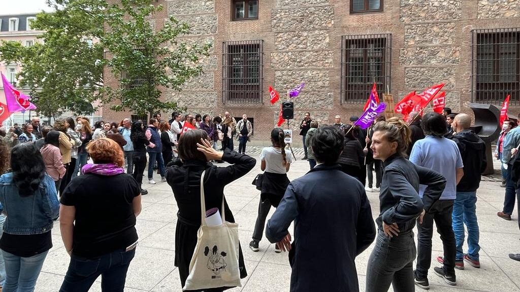 La concentración ha reunido a varios trabajadores de la sede de Cultura que, tras leerse un manifiesto en el que CCOO ha advertido que seguirán movilizándose "hasta conseguir erradicar el amianto", se han proferido cánticos como 'Amianto fuera ya' o 'Amianto 0'