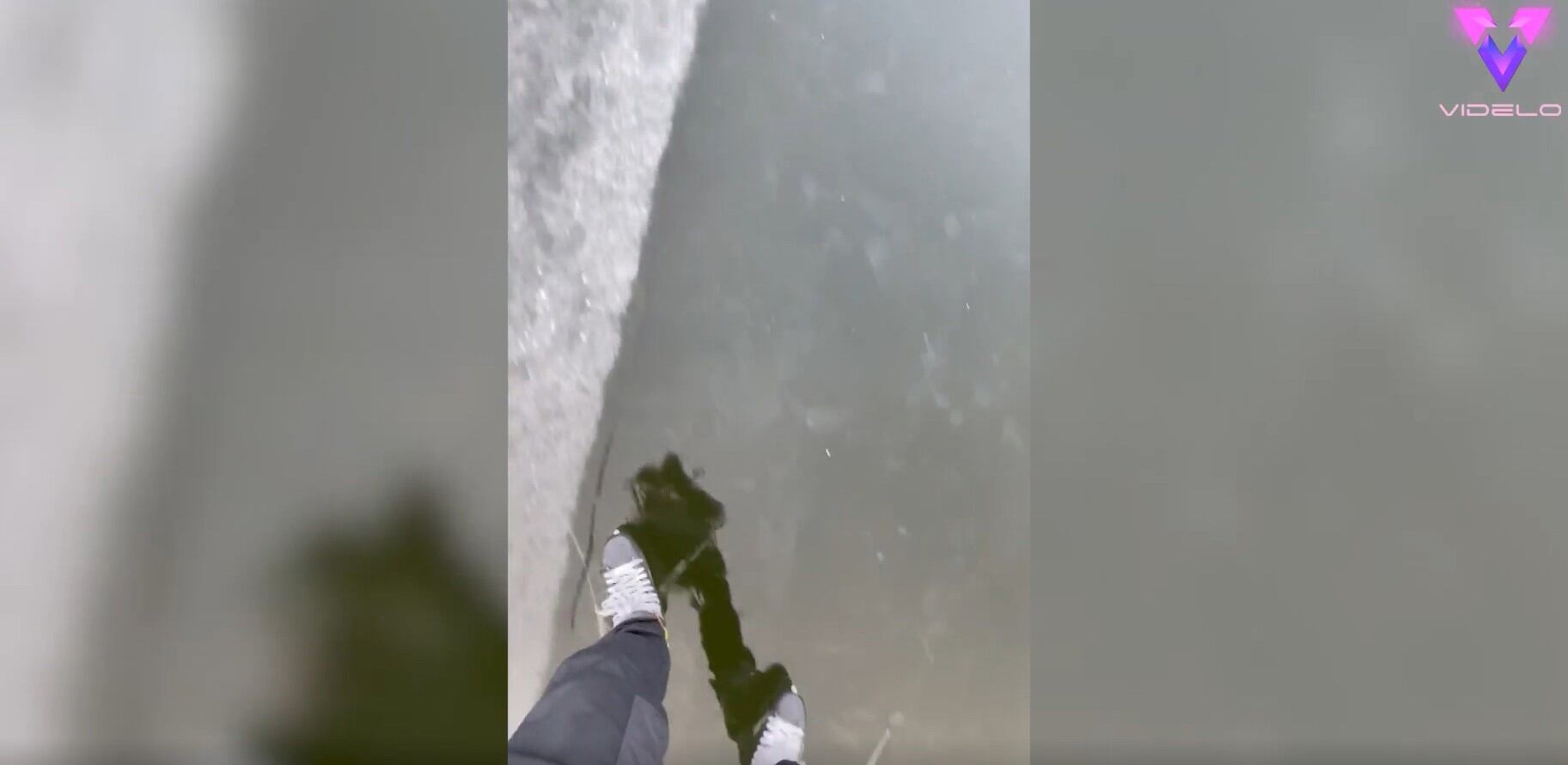 Patinar sobre hielo fino estuvo a punto de salirle mal a este joven.