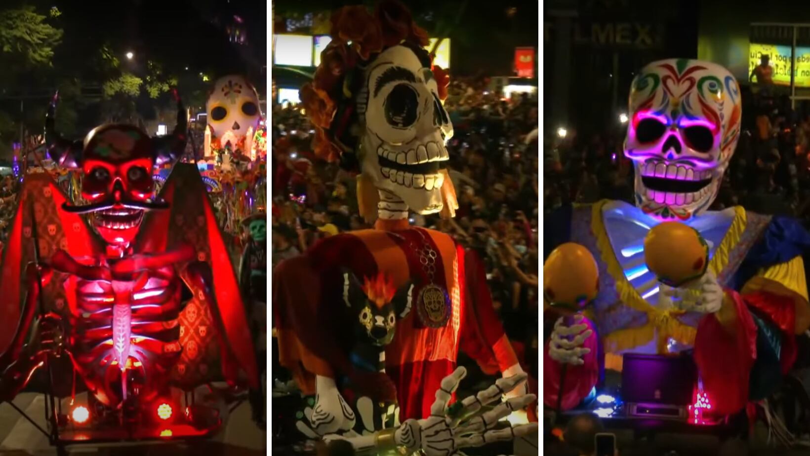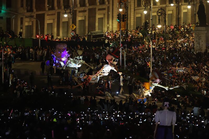 Por casi nueve kilómetros, desde la Estela de Luz hasta el Zócalo, se pudieron observar calaveras, catrinas, mariposas, perros, personajes de la cultura mexicana como Frida Kahlo y Juan Gabriel, entre papel picado, colores, flores música y baile.