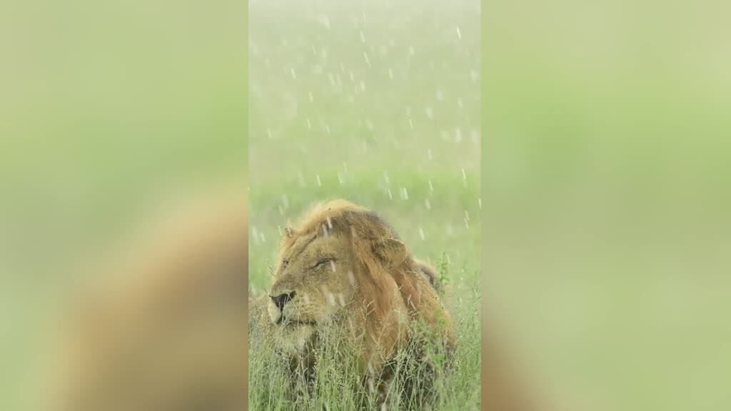 Tras una fuerte tormenta, el majestuoso león estaba empapado y procedió a sacudirse para secarse, sin inmutarse por la presencia de sus observadores humanos. Zaheer dijo: "El vídeo me parece absolutamente cautivador.