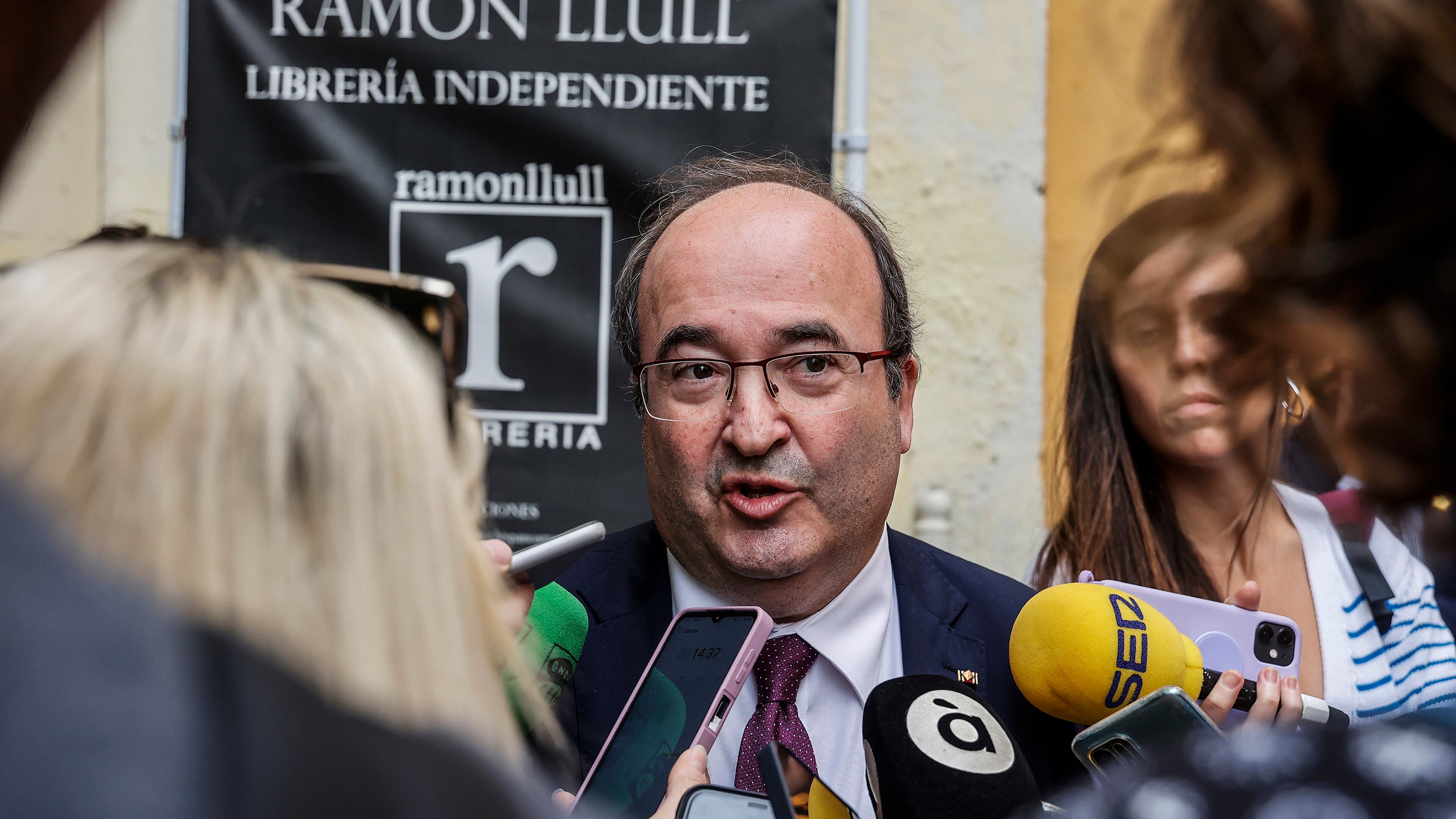 El ministro de Cultura, Miquel Iceta, ofrece declaraciones a los medios antes de reunirse con el sector cultural en València, en la librería Ramón Llull, a 3 de noviembre de 2022, en Valencia, Comunidad Valenciana (España). Durante su reunión con el Rober Solsona - Europa Press (rober solsona/Europa Press)