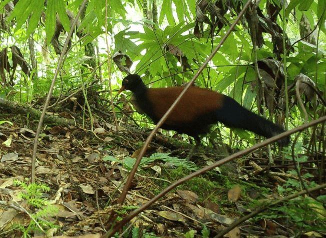 El equipo de investigación fotografió a la paloma-faisán con una cámara trampa remota al final de una búsqueda de un mes en Fergusson.