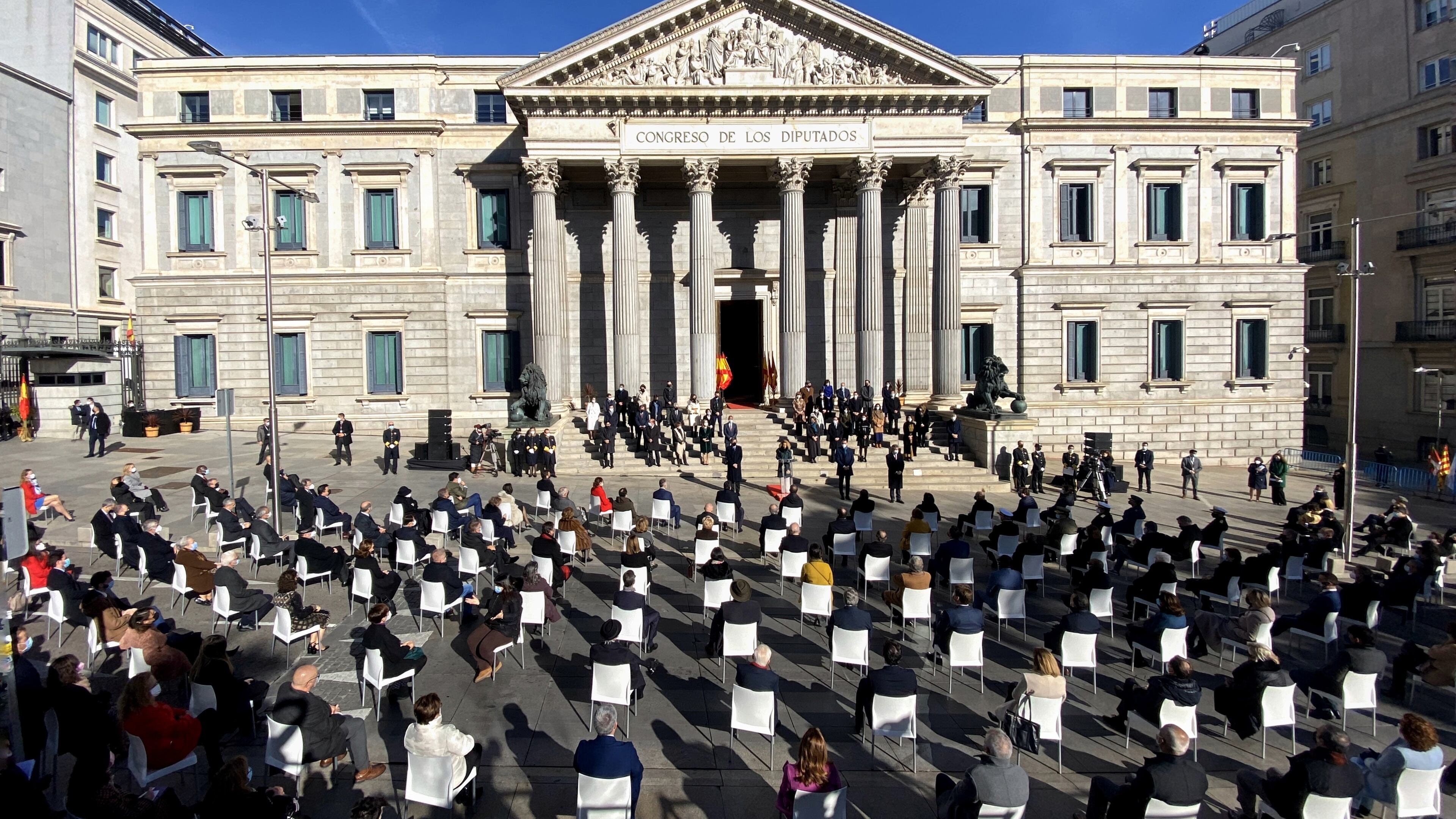 El acto de este año contará con una novedad, pues el tradicional acto de izada de bandera de España que anualmente se realizaba en la Plaza de Colón de Madrid, se realizará esta vez ante la fachada del Congreso y los presidentes de la Cámara Baja, Meritxell Batet, y del Senado, Ander Gil, serán quienes pasen revista a las tropas en una breve parada militar.