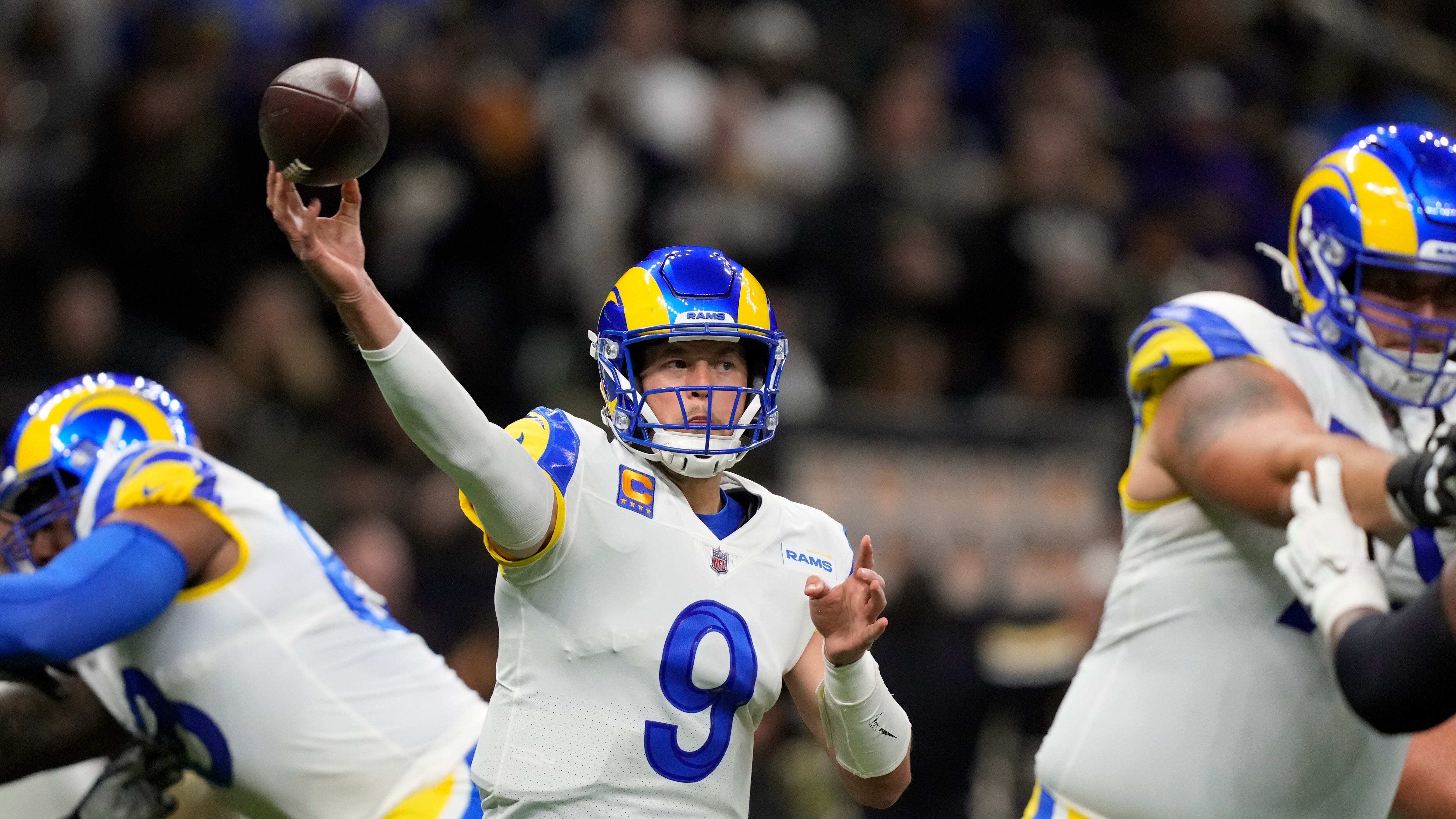 Stafford ha lanzado para 2.087 yardas, con 10 touchdowns y ocho intercepciones, completamente un máximo de carrera del 68% de sus pases en nueve encuentros esta temporada. Está en su segundo año con los Rams tras pasar 12 con los Lions de Detroit.