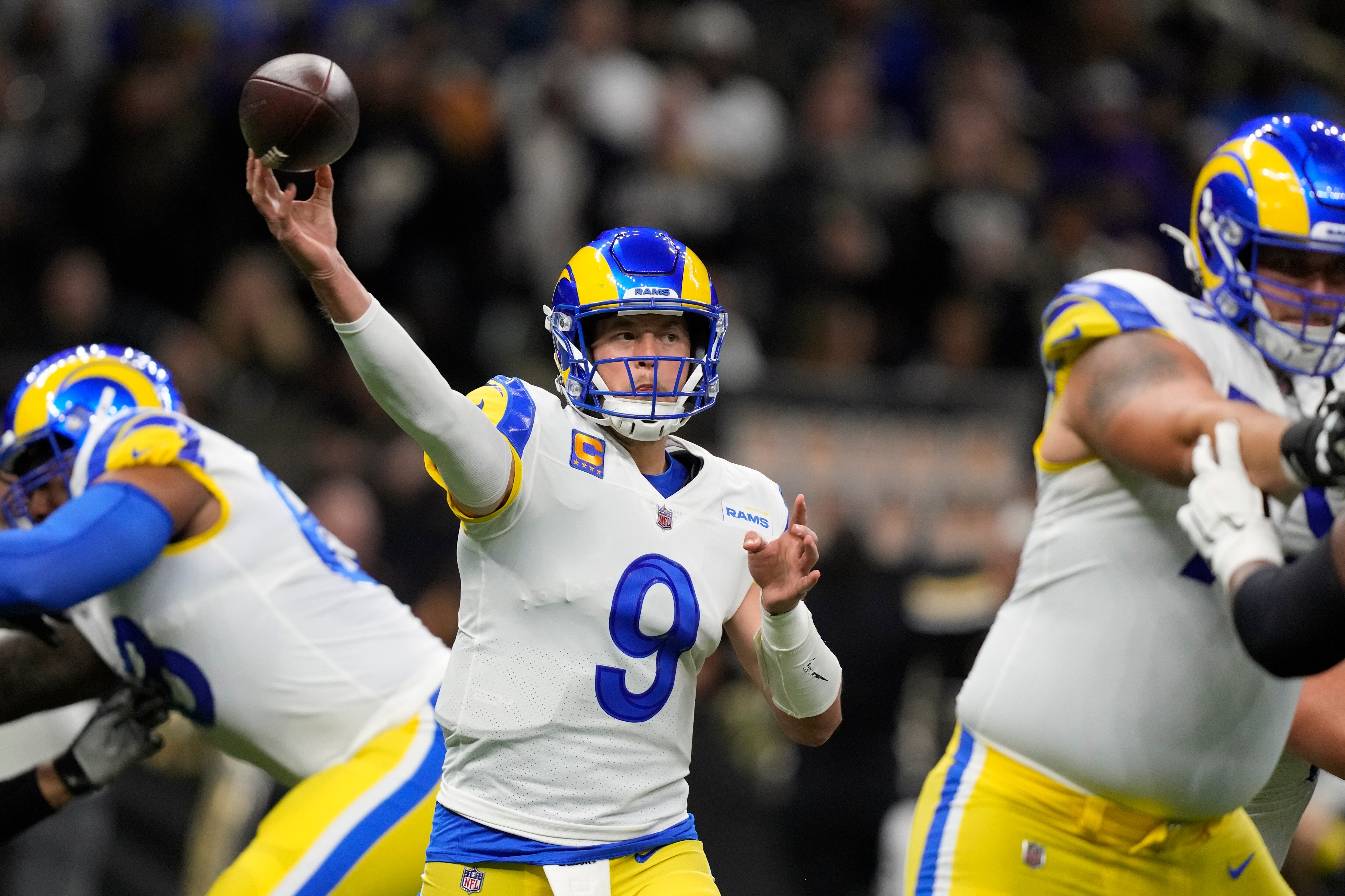 Stafford ha lanzado para 2.087 yardas, con 10 touchdowns y ocho intercepciones, completamente un máximo de carrera del 68% de sus pases en nueve encuentros esta temporada. Está en su segundo año con los Rams tras pasar 12 con los Lions de Detroit.