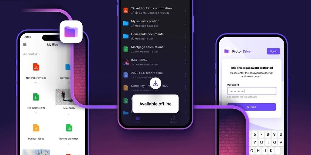 Con la nueva aplicación de Proton Drive, los usuarios pueden enviar desde archivos (documentos, vídeos, imágenes, etc.) hasta carpetas a cualquier persona a través de enlaces compartidos.