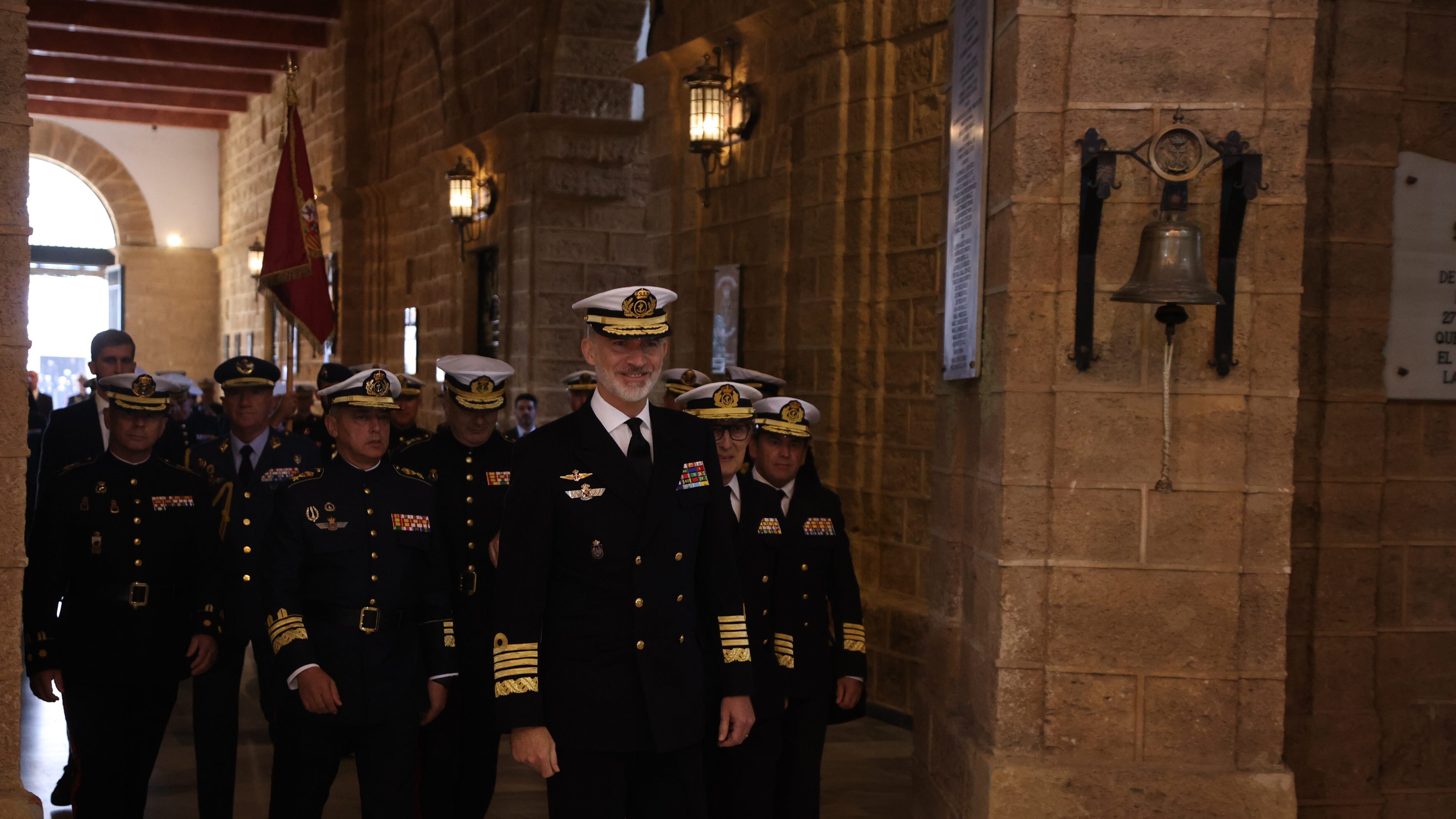Tras sonar el himno de España, el monarca ha pasado revista a las tropas presentes y se ha desplazado hasta una sala para asistir a una reunión en la que ha podido conocer de primera mano las capacidades operativas de la Brigada de Infantería de Marina 'Tercio de Armada' y del Tercio del Sur.