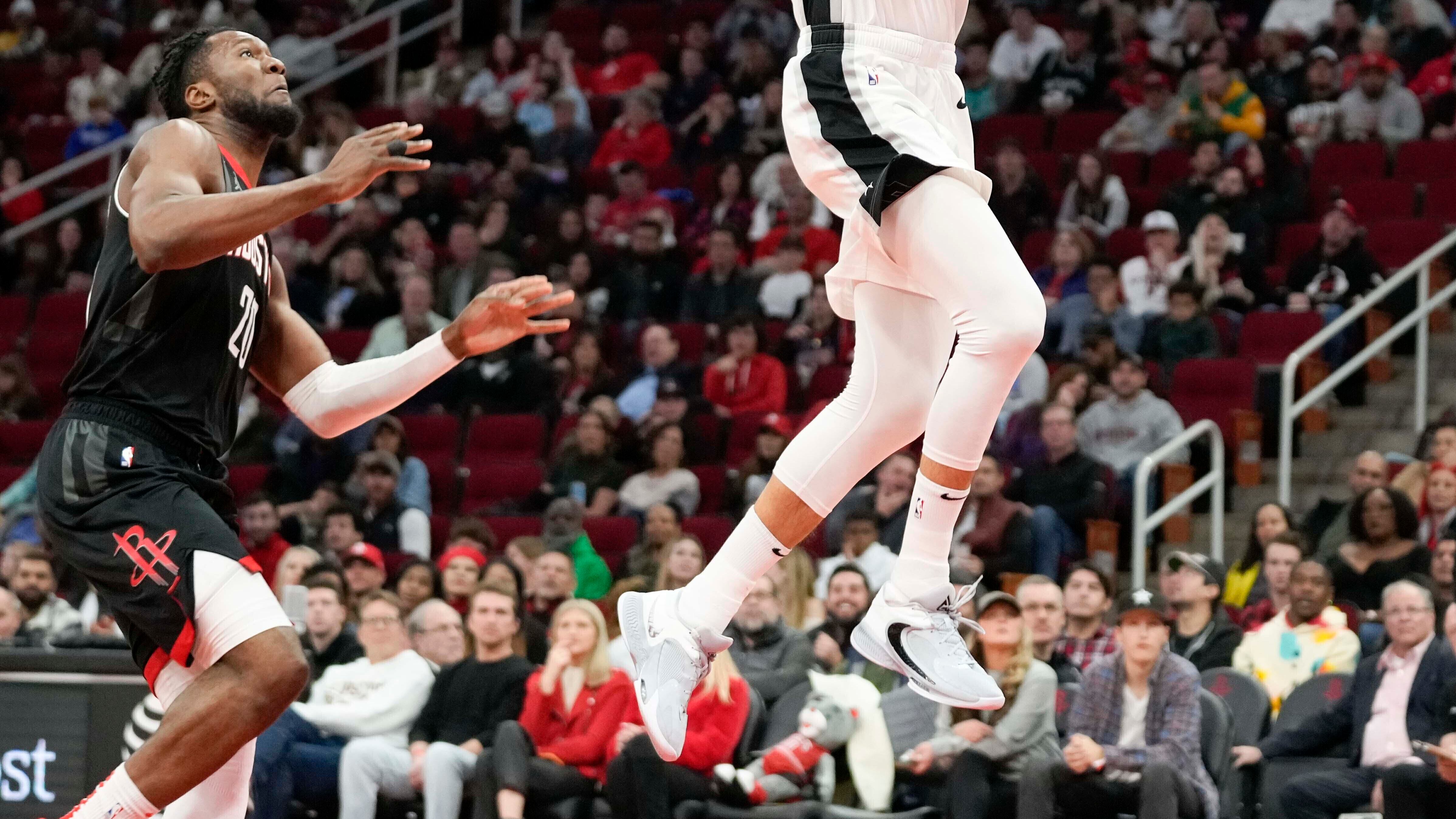 Los Spurs tenían ventaja de 20 cerca del final del cuarto periodo y con una racha de 8-2 se fueron arriba 120-94 cuando quedaban cuatro minutos de juego. Vassell y Malaki Branham tuvieron triples en ese lapso y Vassell se robó el balón en un mal pase de Jalen Green.