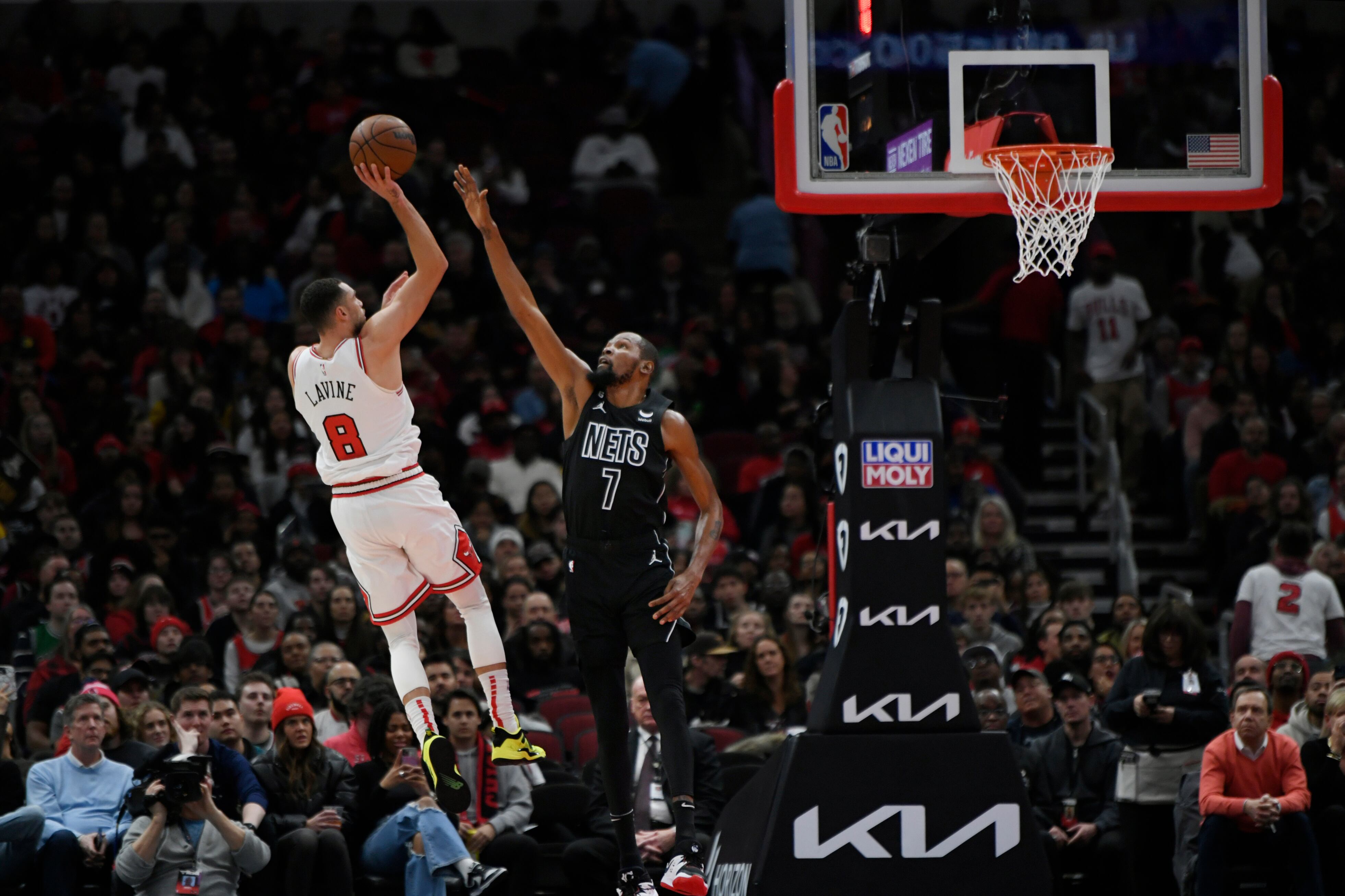 Durant descansó al inicio del cuarto periodo y Chicago sumó ocho puntos consecutivos. Dosunmu se robó un pase a mitad de la cancha y terminó clavando el balón para ampliar la diferencia en el marcador a 106-95 a 6:46 minutos del final.