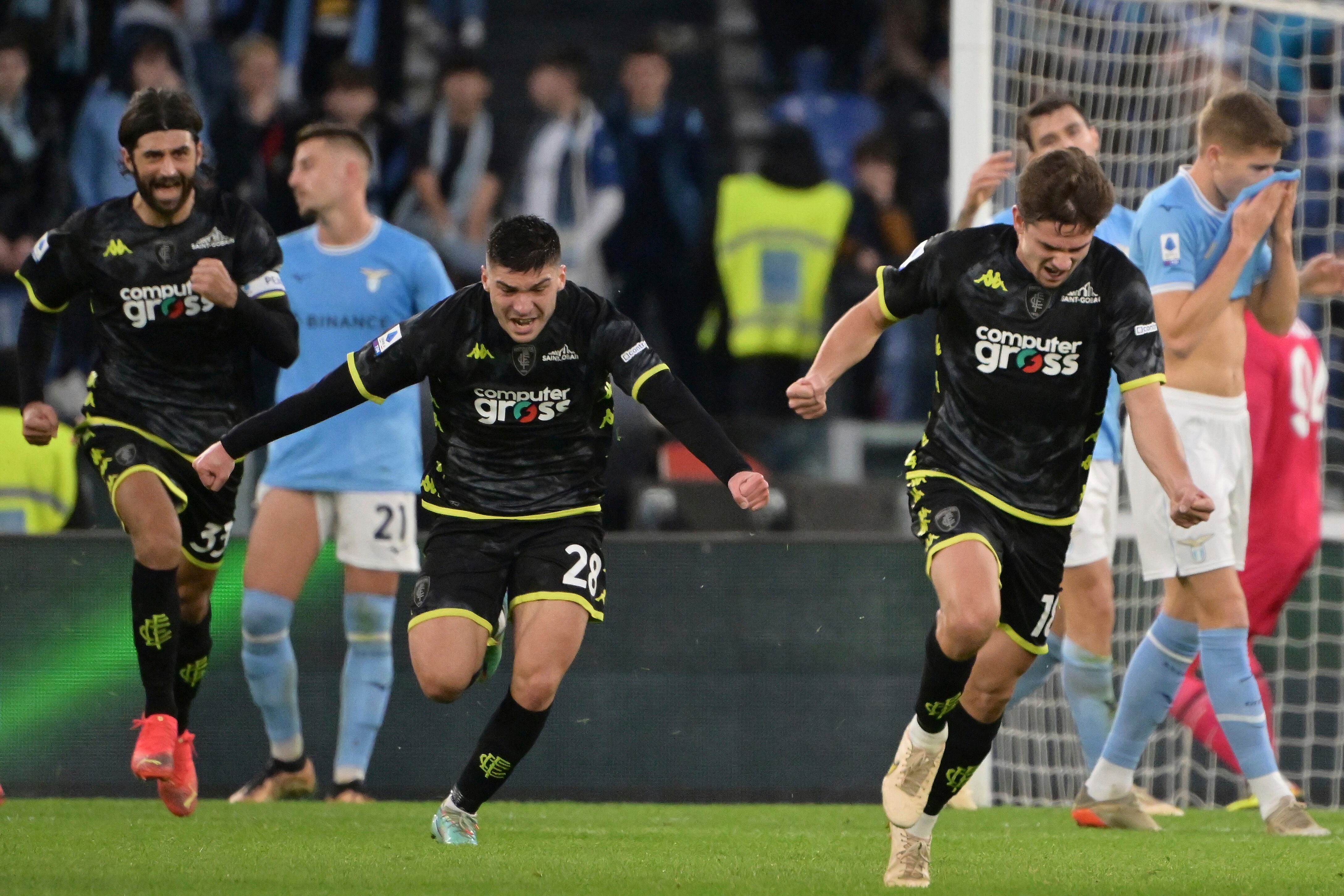 Empoli le frustró el festejo a la Lazio con dos tantos postreros para arrancar un empate 2-2 de la capital italiana.