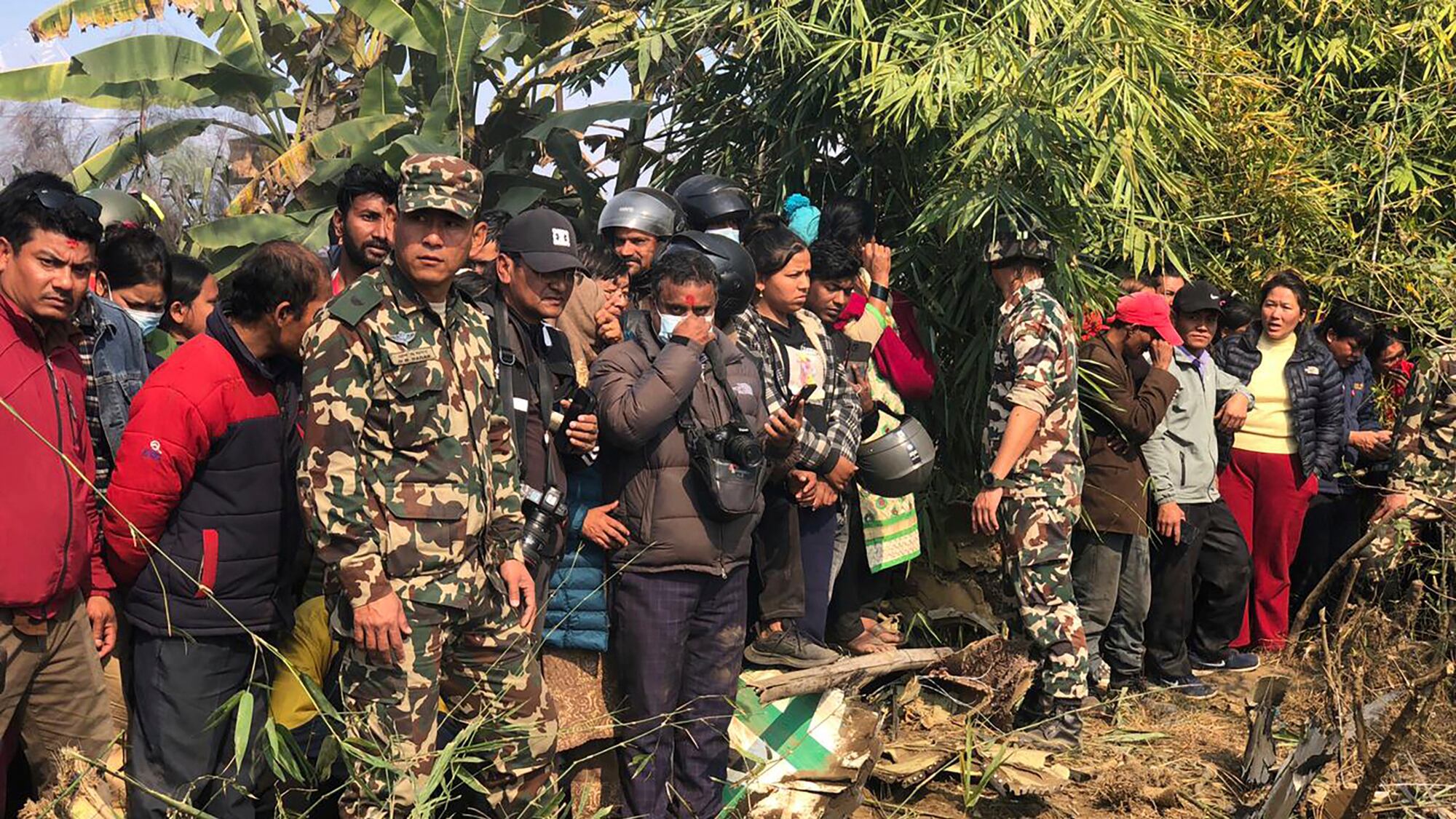 Horas después de que anocheció, gran cantidad de personas se habían aglomerado en el lugar del accidente cerca del aeropuerto en la localidad turística de Pokhara mientras los rescatistas revisaban los escombros al borde del acantilado y en el barranco. Las autoridades suspendieron la búsqueda de los cuatro desaparecidos durante la noche y planeaban reanudar el operativo el lunes.