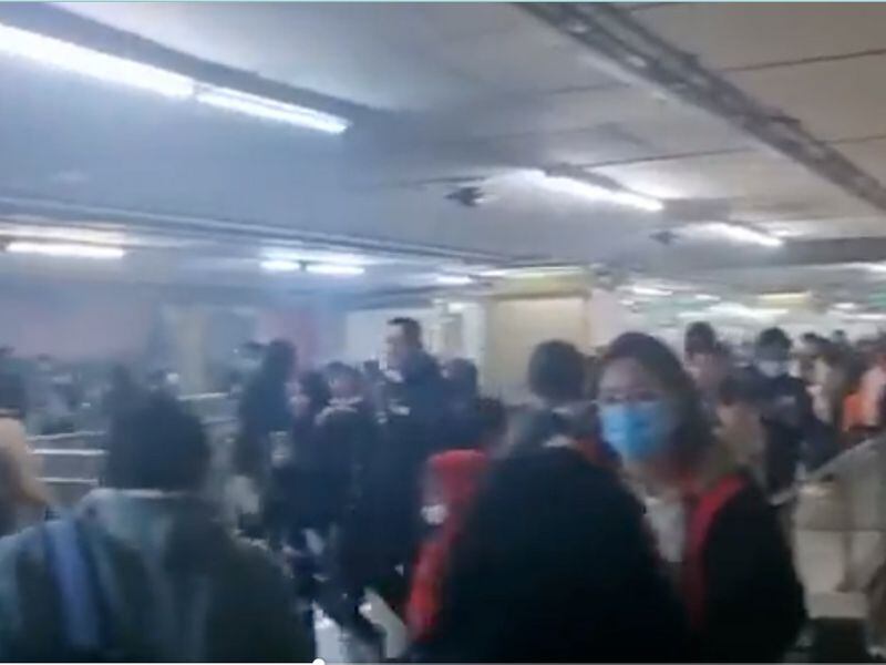 En imágenes compartidas en redes sociales, se observa a varios pasajeros que salen de la estación, otras muestran el tren vacío y el anden llenándose de humo.