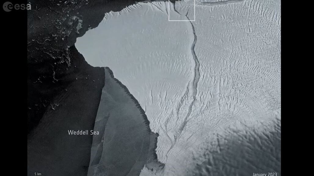 Se estima que el nuevo iceberg antártico tiene una superficie de unos 1.550 km2, es decir, aproximadamente el tamaño del Gran Londres, y un espesor de unos 150 metros. Se desprendió cuando la grieta conocida como Chasm-1 se abrió hacia el norte cortando la parte oeste de la plataforma de hielo.