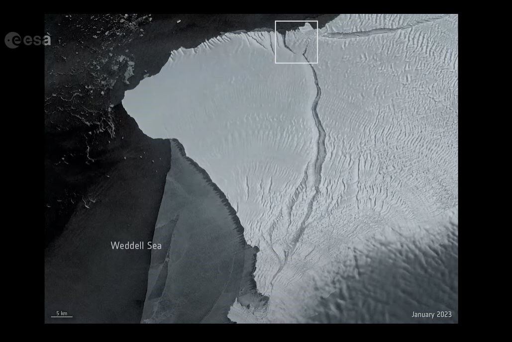 Se estima que el nuevo iceberg antártico tiene una superficie de unos 1.550 km2, es decir, aproximadamente el tamaño del Gran Londres, y un espesor de unos 150 metros. Se desprendió cuando la grieta conocida como Chasm-1 se abrió hacia el norte cortando la parte oeste de la plataforma de hielo.