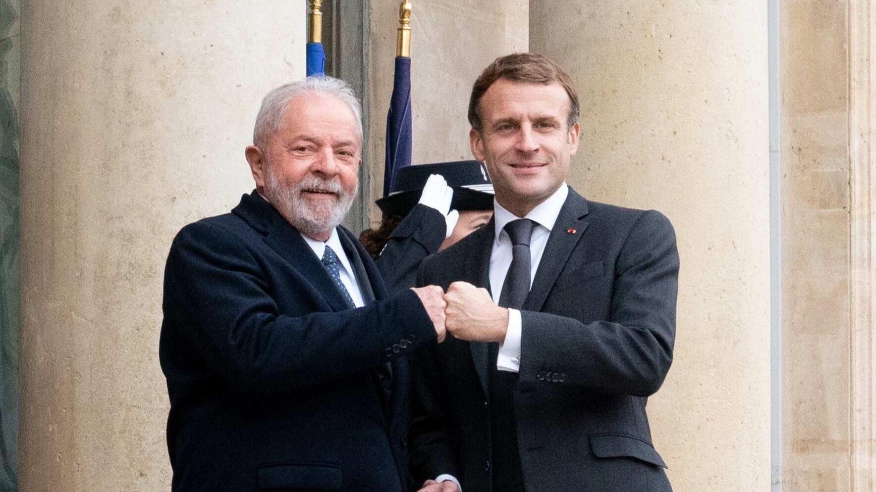 "Felicitaciones, querido presidente y querido amigo por su toma de posesión. ¡Estamos juntos!", escribió el presidente francés el día de la investidura de Lula da Silva, afirmando que Brasil hacía honor a su lema "Orden y progreso".