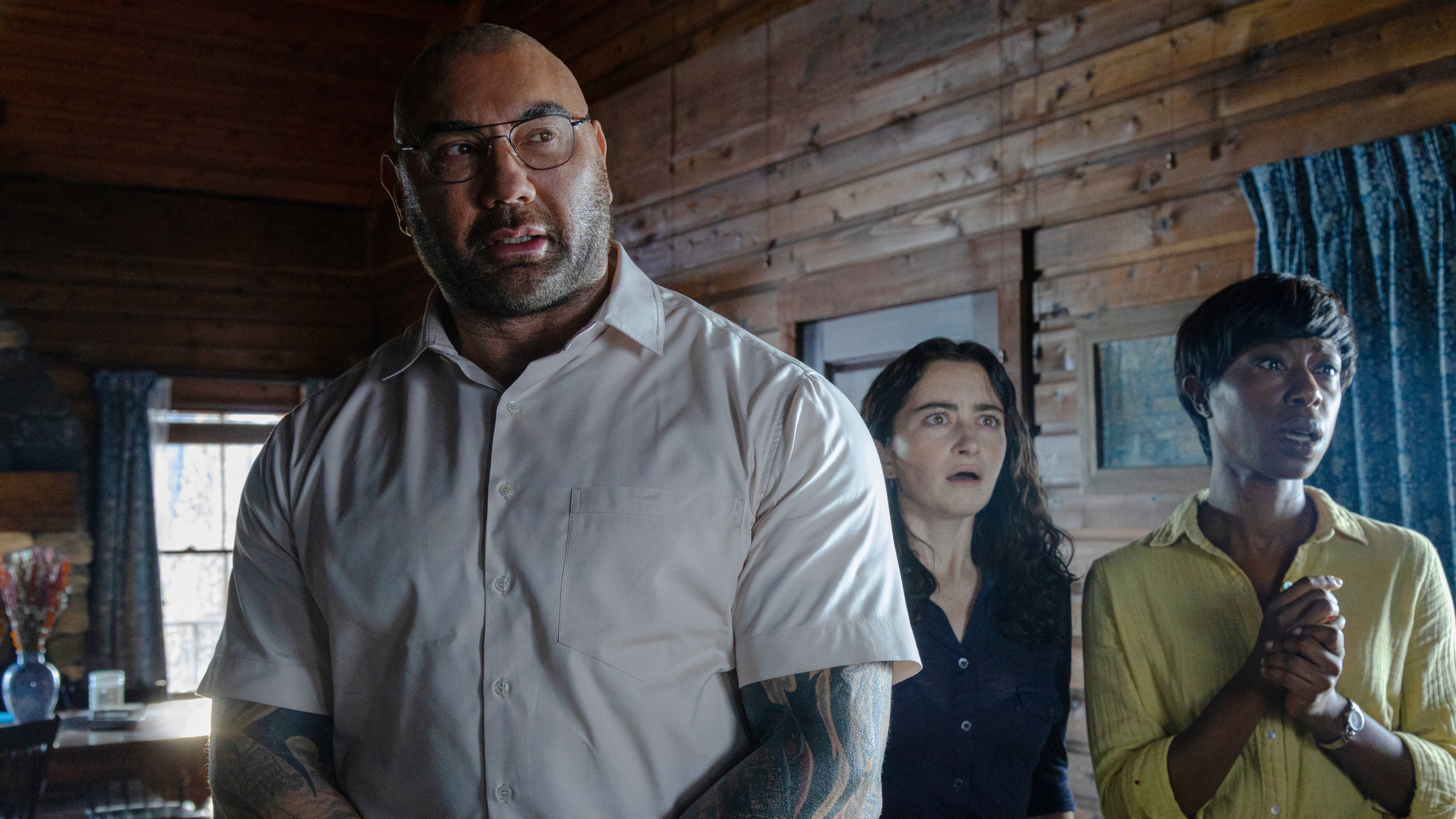 “Knock at the Cabin”, una película de terror con tintes apocalípticos, destronó a la epopeya de ciencia ficción en 3-D de James Cameron con 14,2 millones de dólares en entradas vendidas en los cines de Estados Unidos y Canadá, de acuerdo con estimados del estudio publicados el domingo. El estreno de Universal Pictures está protagonizada por Dave Bautista, uno de cuatro extraños que se acerca a una familia que se encuentra de vacaciones en una cabaña.