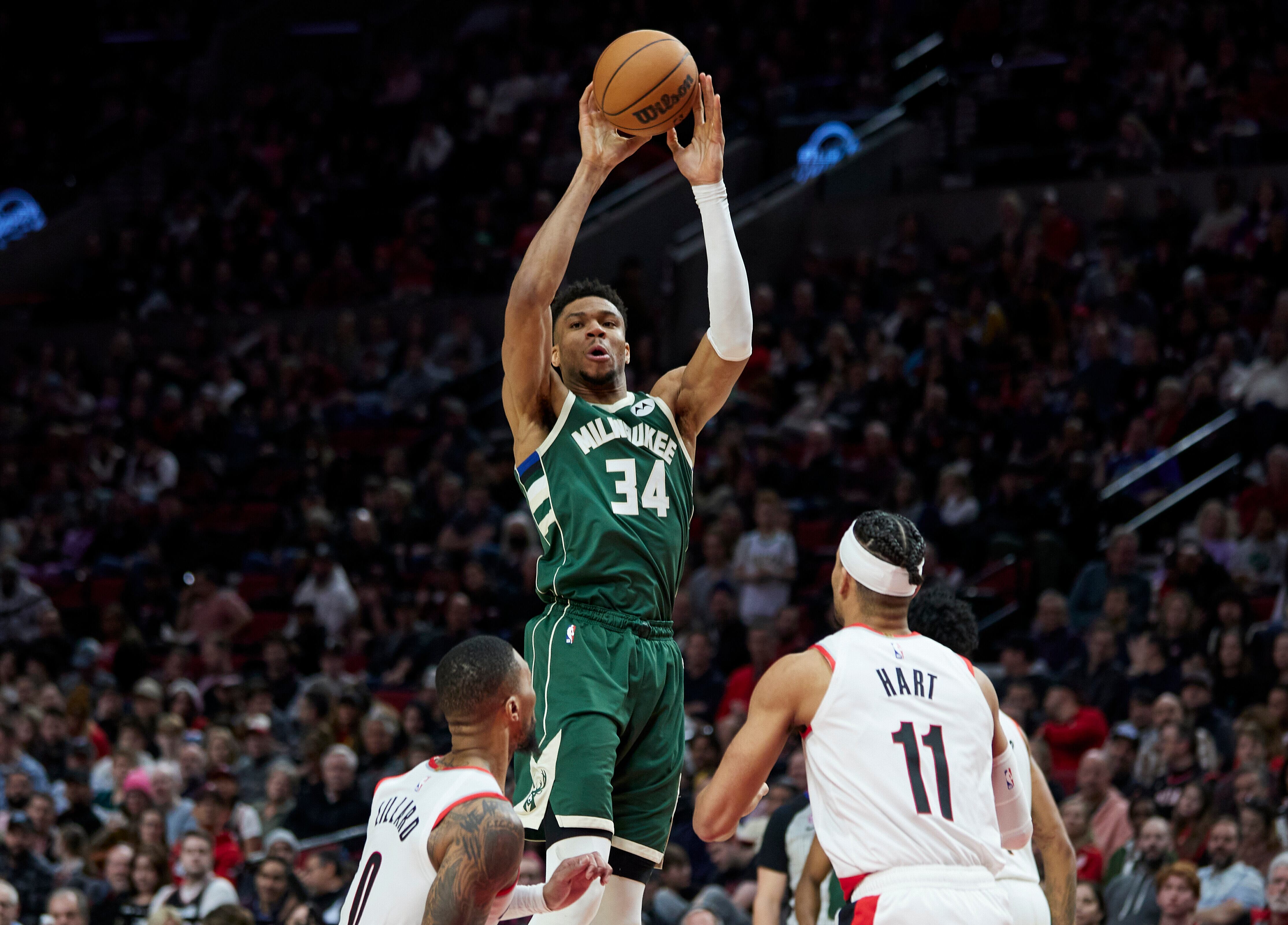 Damian Lillard lideró a los Blazers con 28 puntos. Antetokounmpo y Lillard habían sido elegidos los mejores jugadores de la semana antes en el día tras promediar 41 tantos y 17,3 rebotes y 38,3 unidades y 6,8 asistencias, respectivamente.