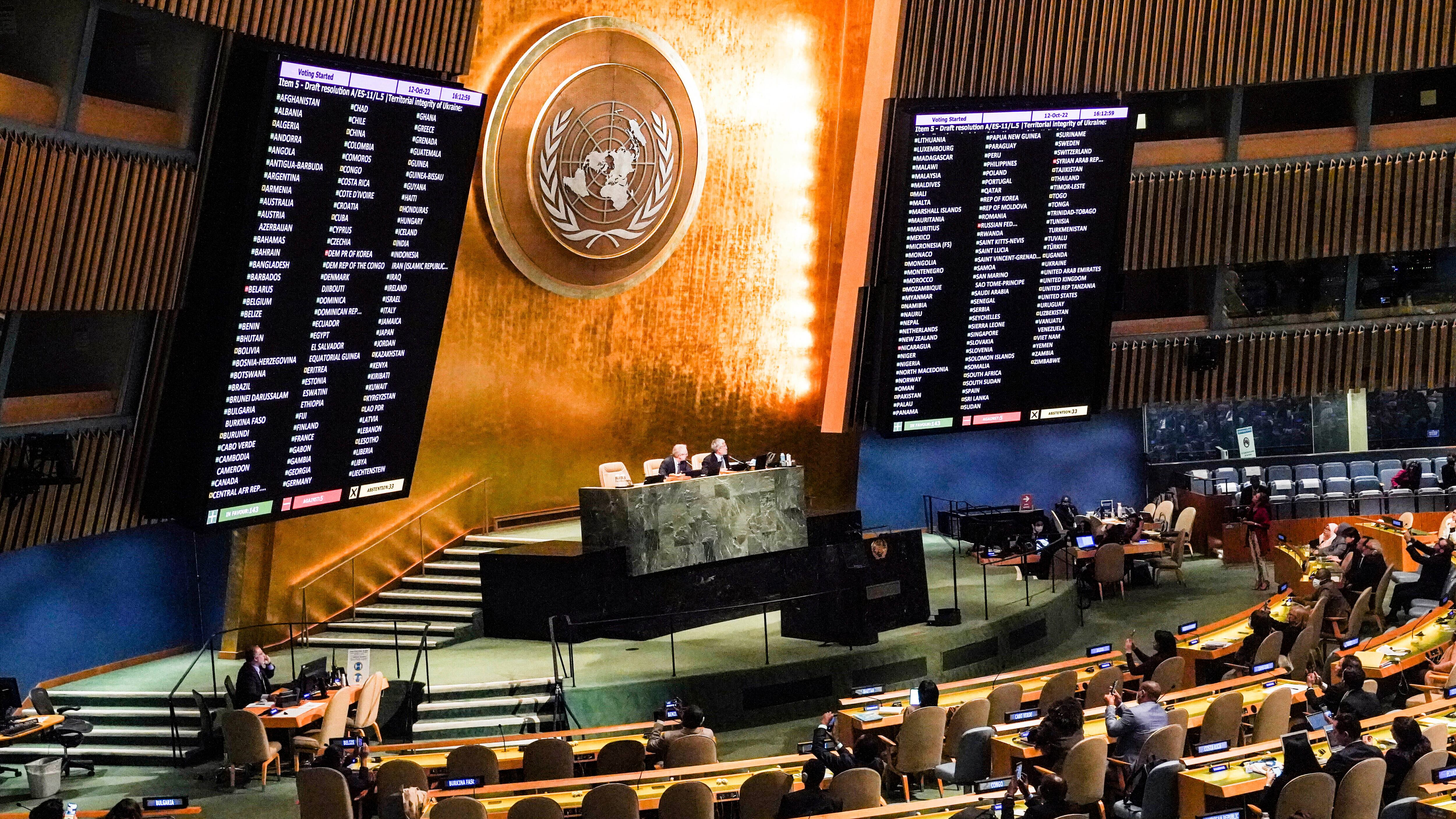 La Asamblea General se ha convertido en el órgano más importante de la ONU para lo relacionado con Ucrania ya que el Consejo de Seguridad, que es el encargado de mantener la paz y la seguridad internacional, está paralizado por el poder de veto de Rusia. Al diferencia de esa entidad, en la Asamblea no hay vetos, pero aunque sus cinco resoluciones anteriores sobre Ucrania son importantes como que reflejo de la opinión global sobre el conflicto, no son legalmente vinculantes.