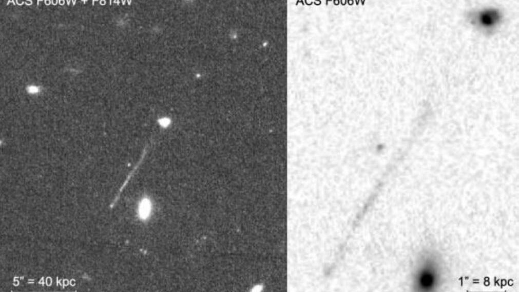 "La interacción de un agujero negro supermasivo fuera de control con el CGM puede conducir a la formación de una estela de gas en estado de choque y estrellas jóvenes detrás de ella", escriben los autores. En su artículo, informan del descubrimiento fortuito de una característica lineal en imágenes de la Advanced Camera for Surveys del Hubble que podría ser una de estas estelas.
