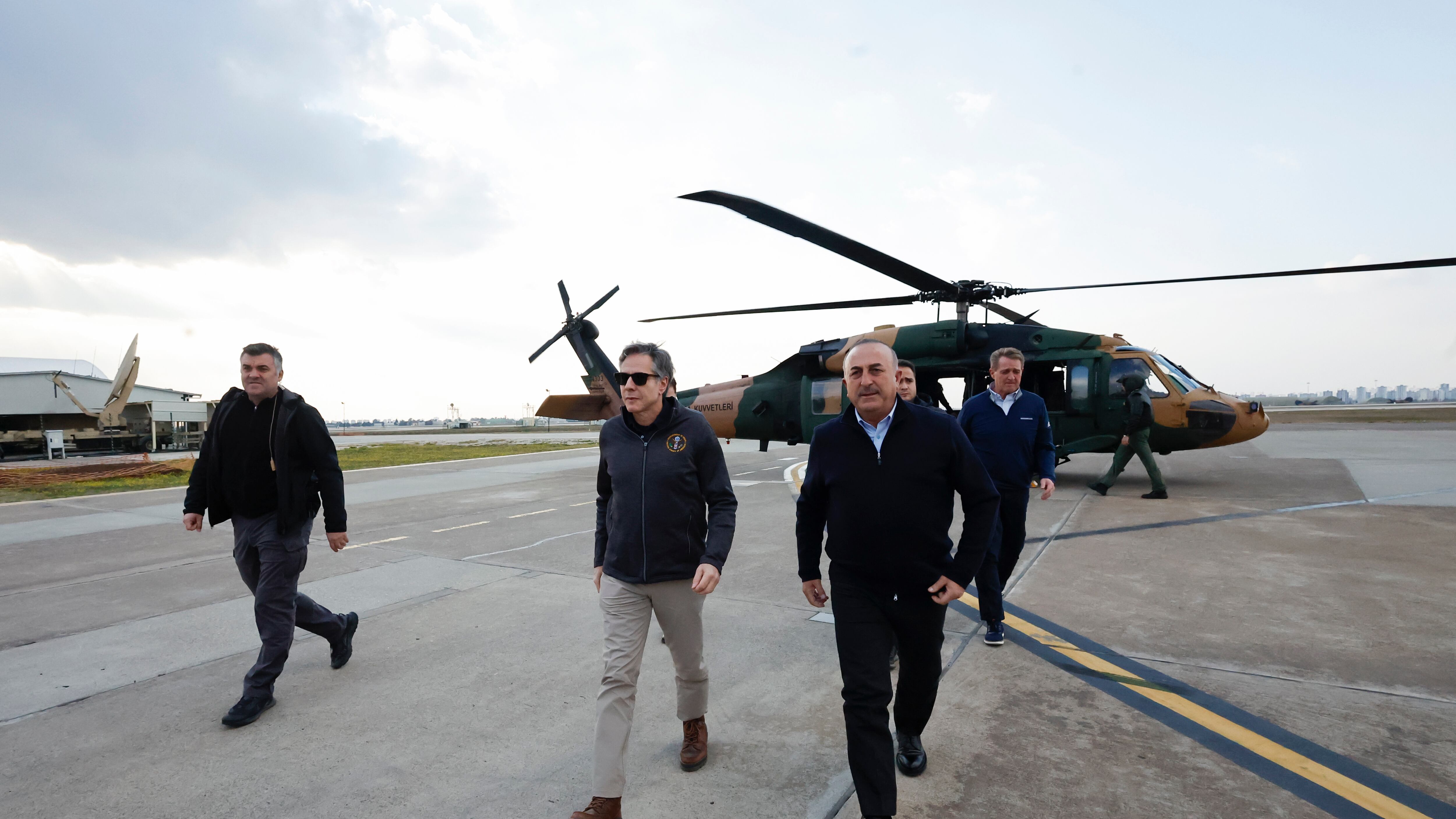 Recorrió la provincia turca de Hatay en un helicóptero, acompañado del ministro de Relaciones Exteriores de Turquía, Mevlut Cavusoglu. Se esperaba que Blinken se reuniera más tarde con personal de los servicios estadounidense y turco, así como con familias de militares turcos afectados por el terremoto.