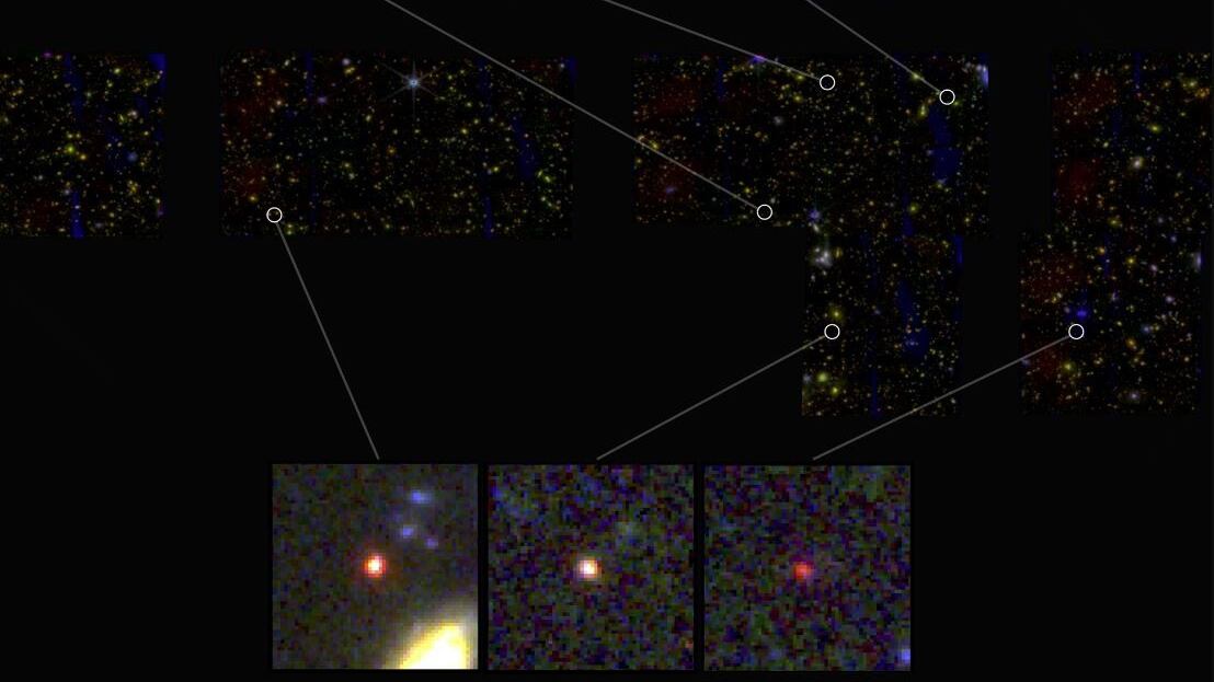 Nelson estaba observando una sección de una imagen del tamaño de un sello de correos cuando vio algo extraño: unos "puntos borrosos" de luz que parecían demasiado brillantes para ser reales. "Eran muy rojos y brillantes --asegura Nelson--. No esperábamos verlos".