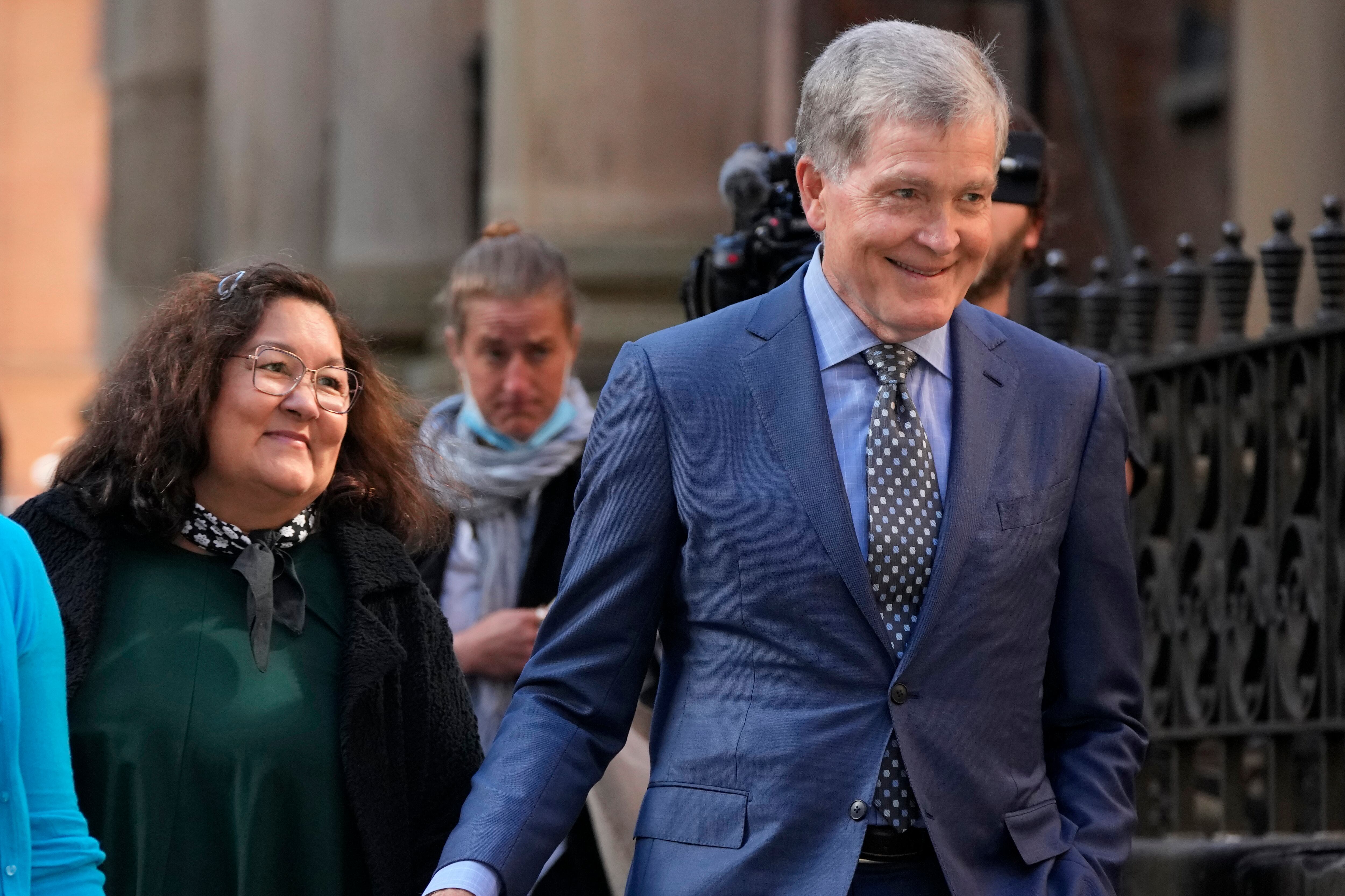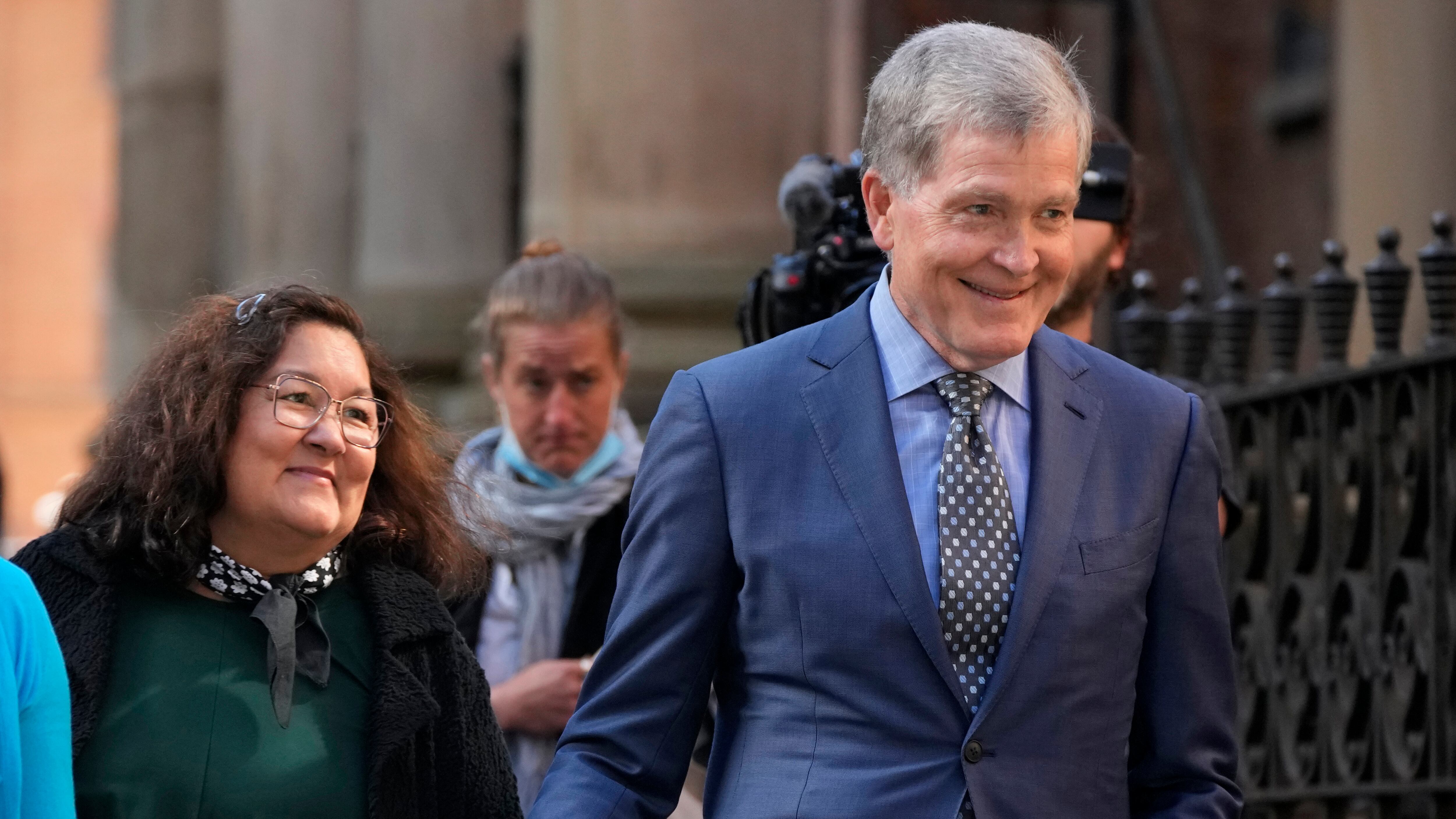 ARCHIVO - Steve Johnson, derecha, y su esposa Rosemarie llegan a la Corte Suprema en Sydney, Australia, el 2 de mayo de 2022, para una audiencia de sentencia por el asesinato de Scott Johnson, hermano de Steve. (AP Foto/Rick Rycroft, archivo) AP (Rick Rycroft/AP)