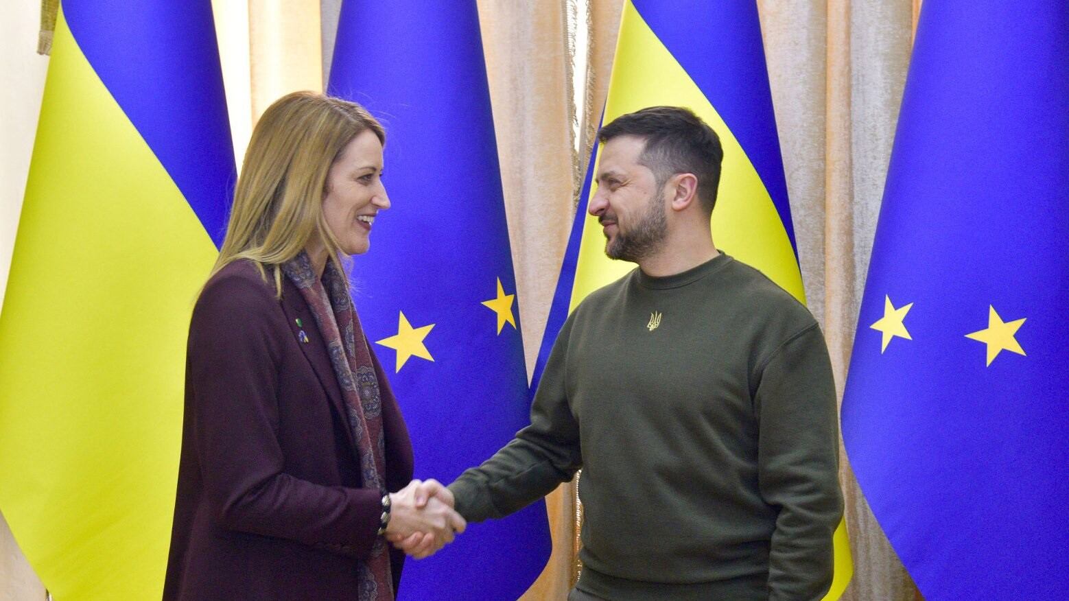 "Los Estados miembro deberían considerar seriamente el envío de aviones de combate a Ucrania", ha declarado Metsola durante su visita a la ciudad ucraniana de Leópolis y tras reunirse con el presidente ucraniano, Volodimir Zelenski, en su segunda visita al país tras la primera efectuada a estas alturas del año pasado.