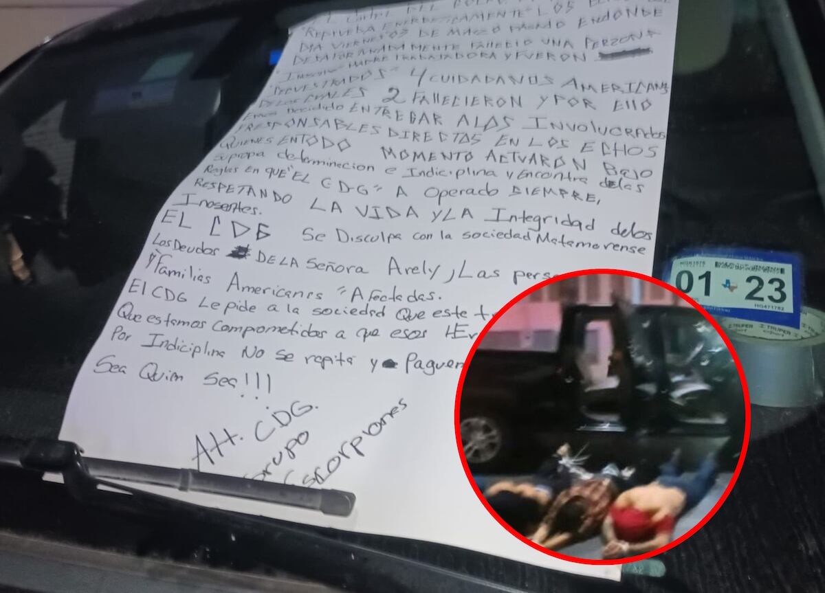 “El CDG se disculpa con la sociedad matamorense, los deudos de la señora Arely, las personas y familias americanas. El CDG le pide a la sociedad que esté tranquila porque estamos comprometidos a que estos errores causados por indisciplina no se repitan y paguen los responsables, sea quien sea”, explicó en el cartulina la organización causante violencia en dicha localidad.