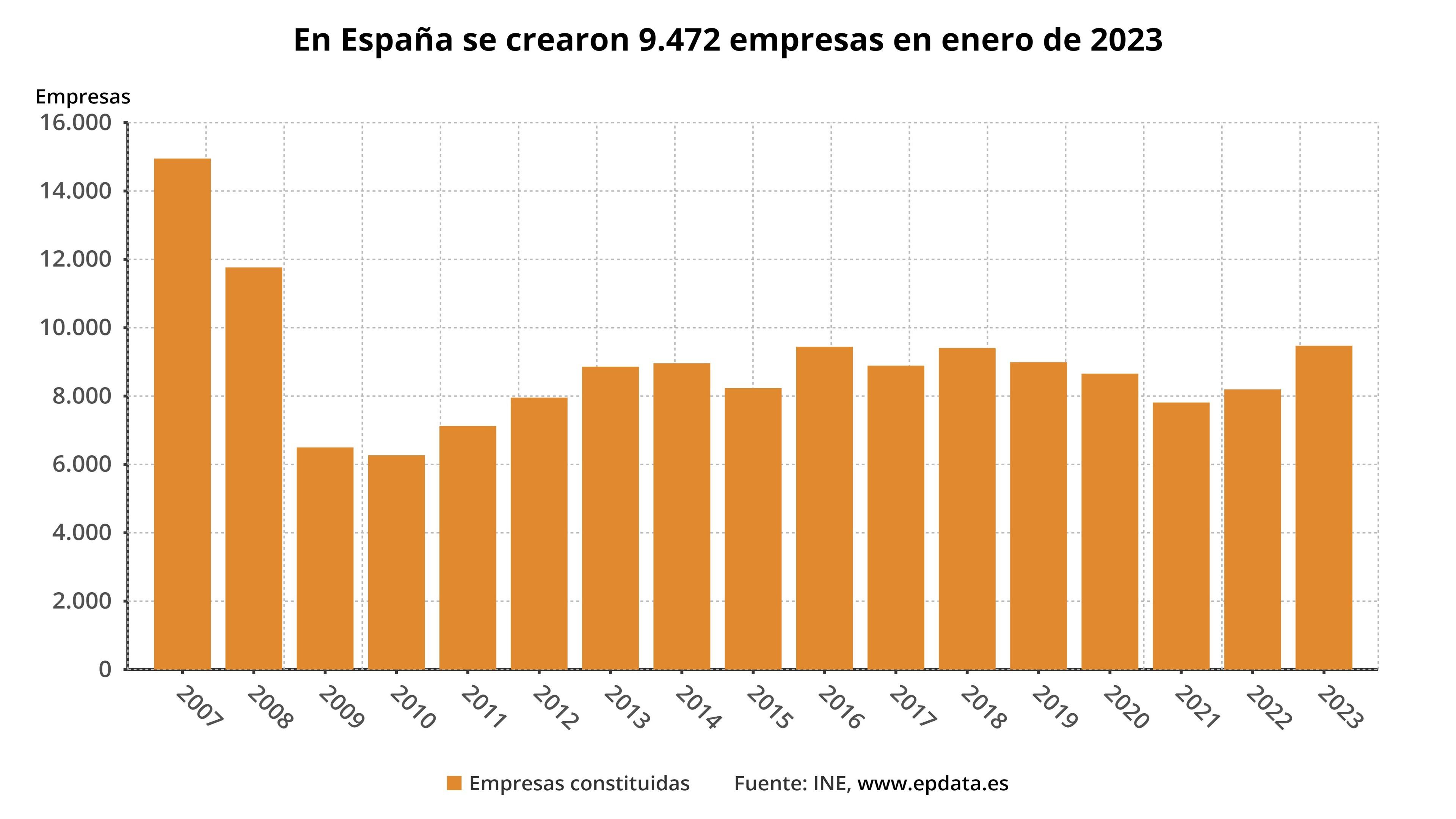Con el repunte de enero, la creación de empresas vuelve a tasas positivas después de que en diciembre experimentara un descenso interanual del 1,6%.