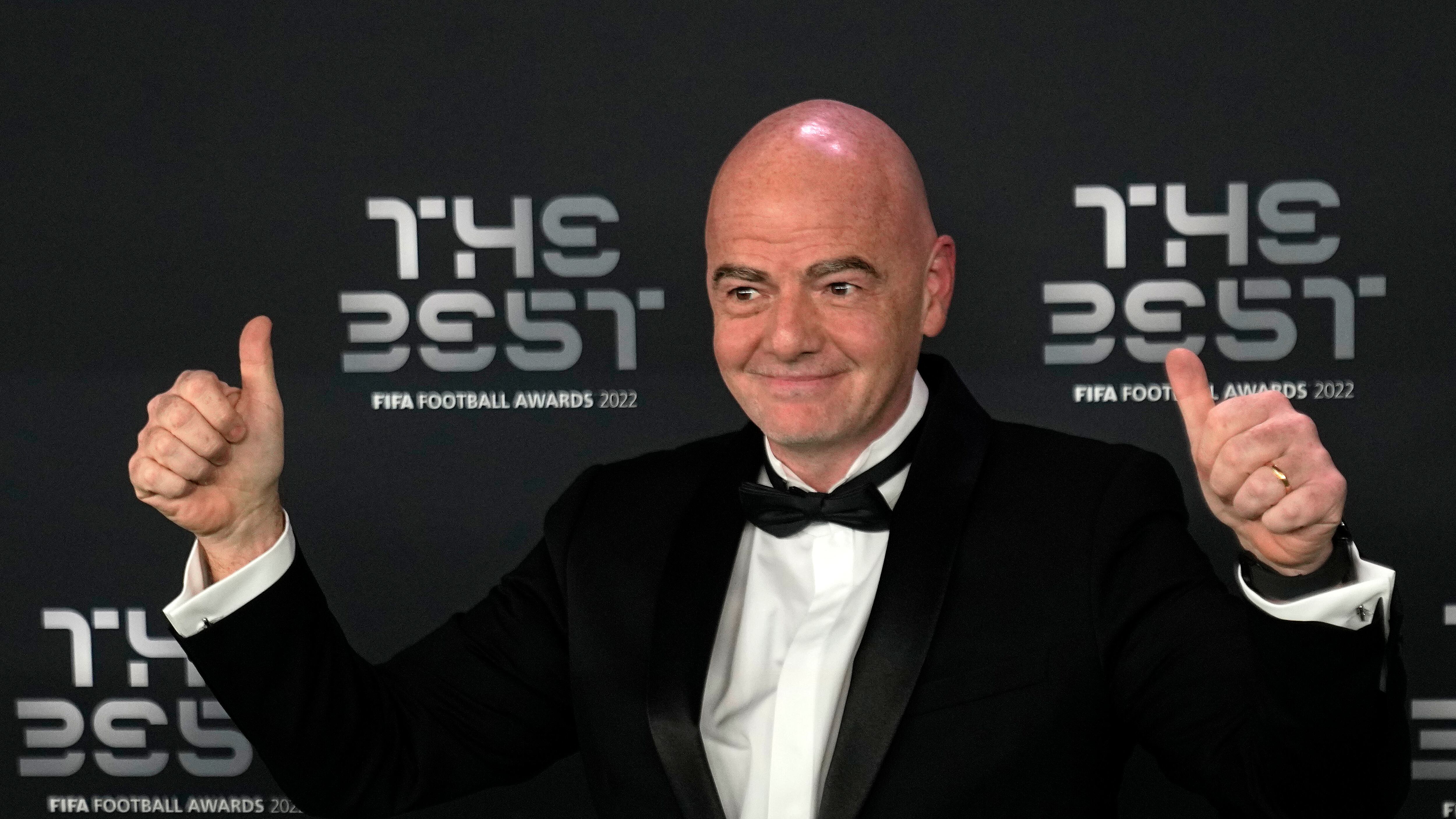 El presidente de la FIFA Gianni Infantino posa previo a la ceremonia de los premios The Best, el lunes 27 de febrero de 2023, en París. (AP Foto/Michel Euler) AP (Michel Euler/AP)