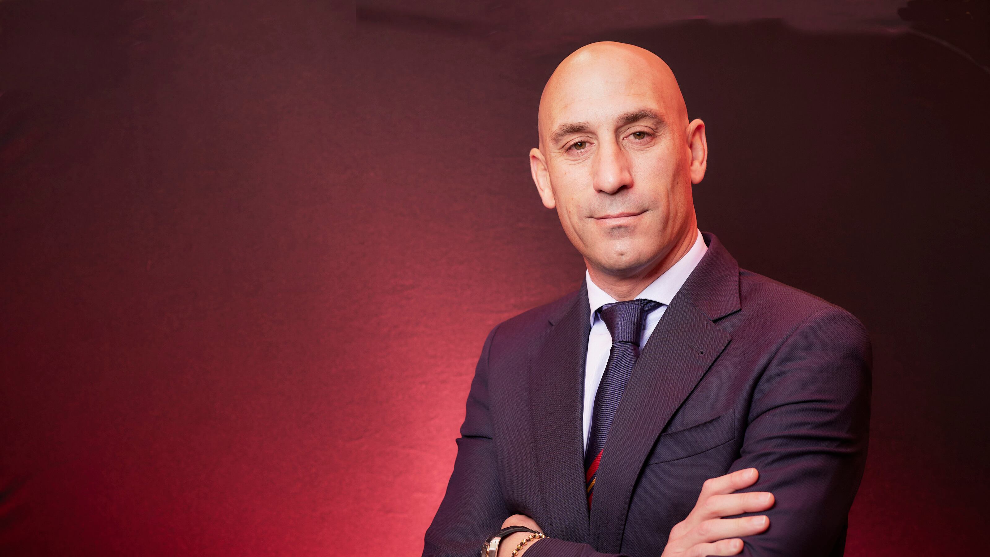 El presidente de la Real Federación Española de Fútbol, Luis Rubiales, posa para Europa Press, en el Auditorio Meeting Place a 14 de febrero de 2023, en Madrid (España). Luis Manuel Rubiales es un exfutbolista y dirigente deportivo español, president Jesús Hellín - Europa Press