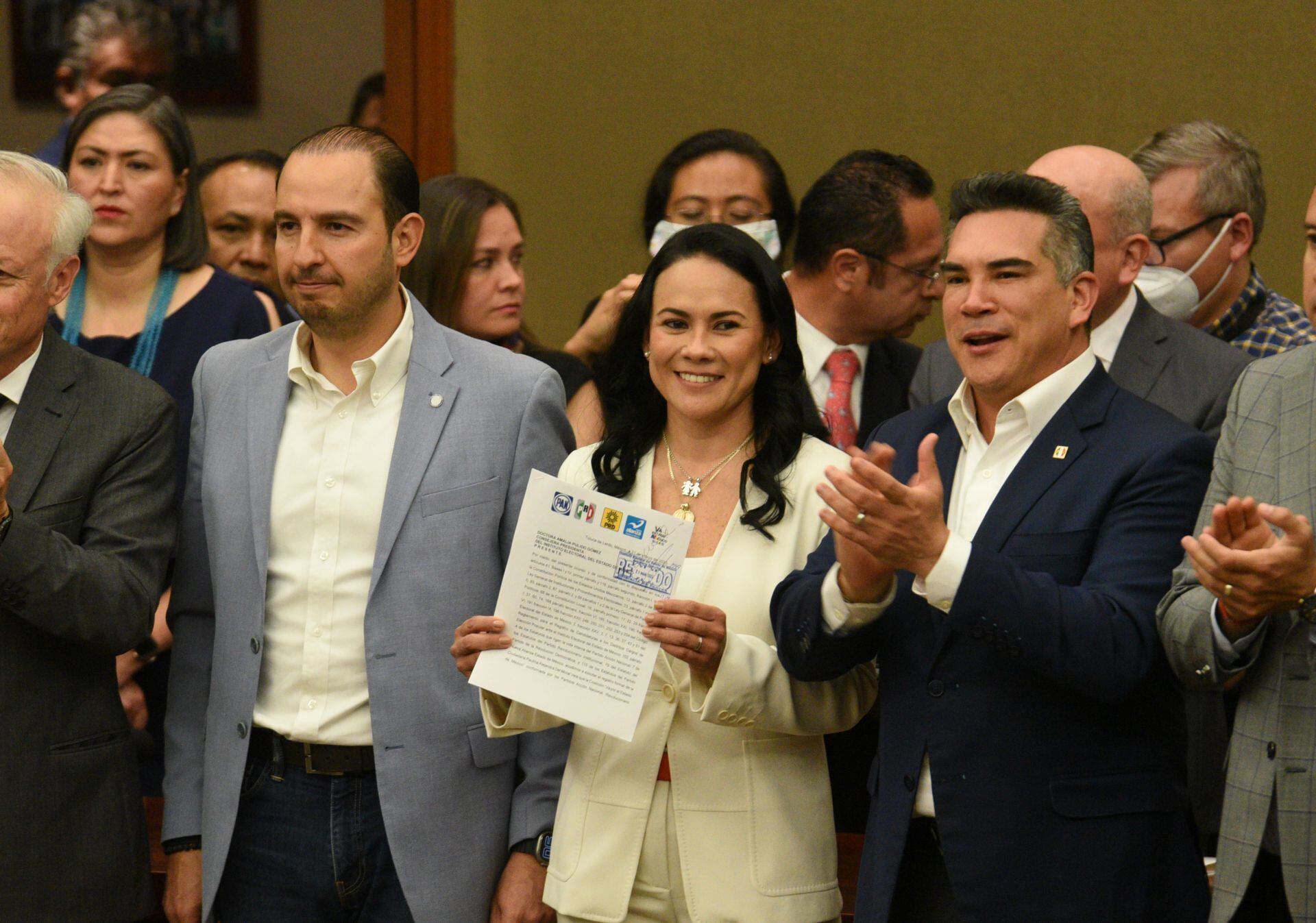 Destacó el acompañamiento del dirigente nacional del PRI, Alejandro Moreno, el estatal, Erik Sevilla, el dirigente estatal del PAN, Anuar Azar y nacional, Matjo Cortés, además del dirigente del PRD en la entidad, Agustín Barrera, el de Nueva Alianza, Mario Cervantes, así como, representantes ante el Consejo General del IEEM, liderazgos sociales.