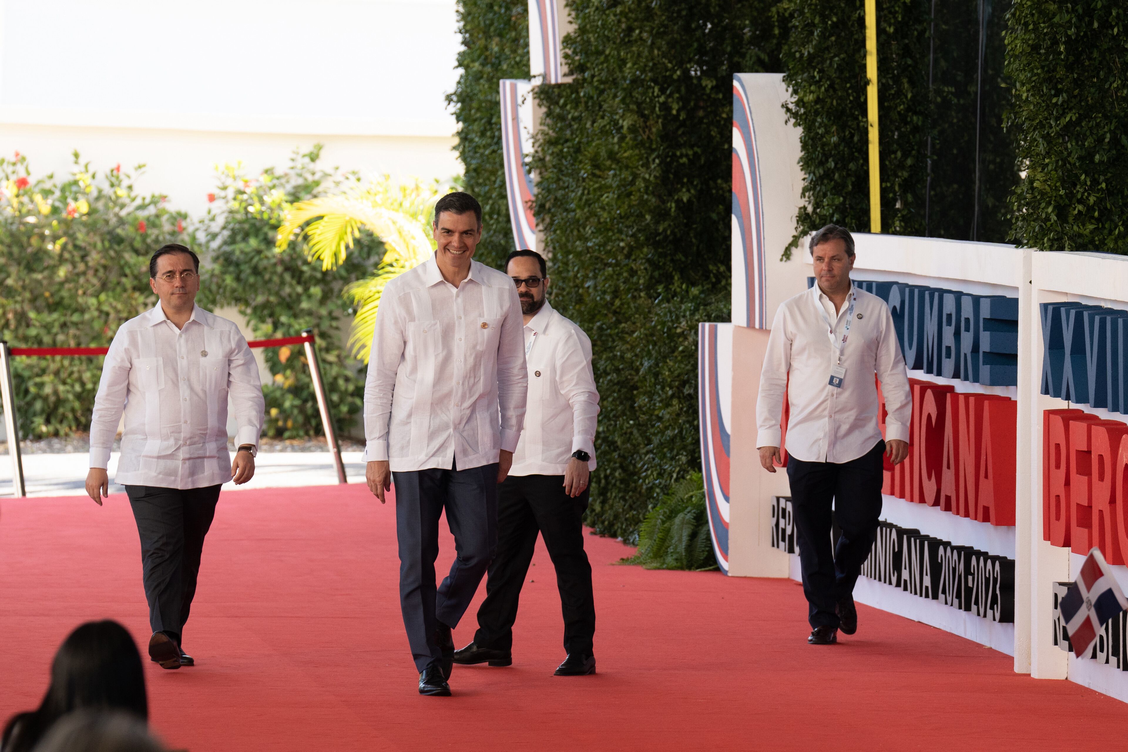 El ministro de Asuntos Exteriores, Cooperación y Unión Europea, José Manuel Albares (1i) y el presidente del Gobierno, Pedro Sánchez (2i), a su llegada a la XXVIII Cumbre Iberoamericana de Jefes de Estado y de Gobierno, a 25 de marzo de 2023, en Santo David Zorrakino - Europa Press (David Zorrakino - Europa Press/Europa Press)