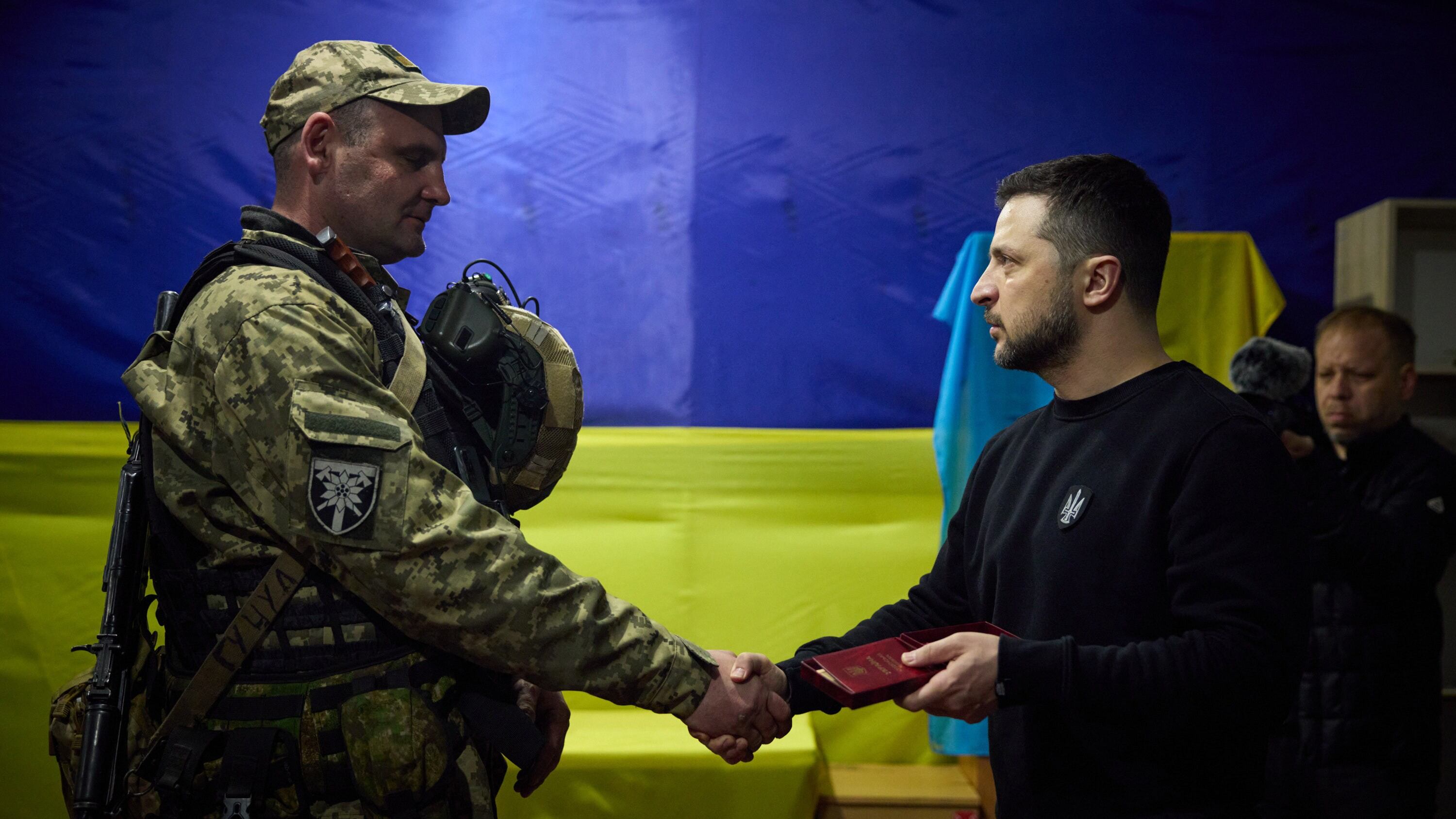 Zelenski ha recibido información de primera mano sobre la evolución de los combates y ha entregado condecoraciones a miembros de las Fuerzas Armadas por su labor en este conflicto, iniciado hace más de un año con la invasión ordenada por el presidente de Rusia, Vladimir Putin.
