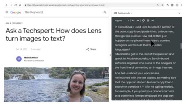 El modo lectura ofrece una vista sin distracciones de una página web, que retira elementos como los vídeos, las imágenes o los anuncios, para que el usuario pueda centrarse en el texto.